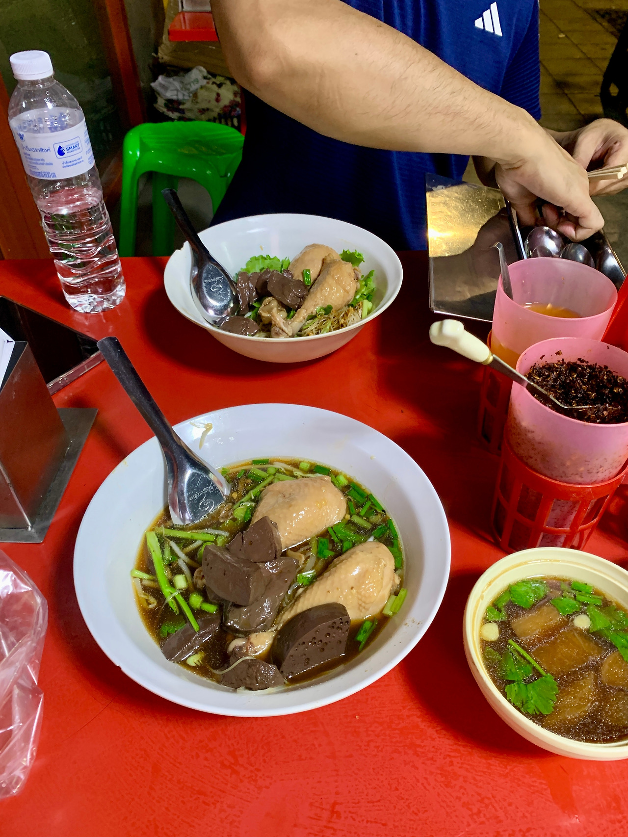 친구의 맛집에 왔어요. 저렴한 가격에 닭다리가 들어간 국수에 땡모반 먹고 호텔로 왔답니다.