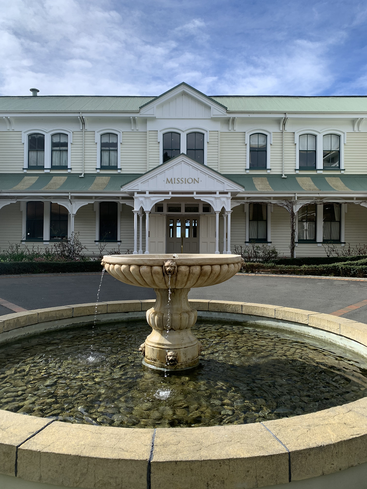 주차를 하고 분수대가 있는 이 건물에서 와인을 시음할 수 있답니다.