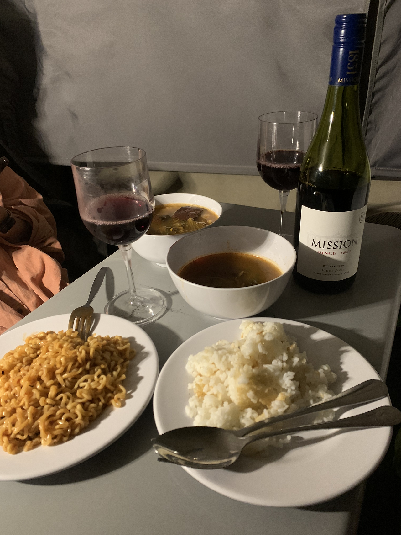 미션 와이너리에서 구매해 온 레드와인과 냉털 같은 라면과 해장국으로 저녁을 만들어 먹었었네요.