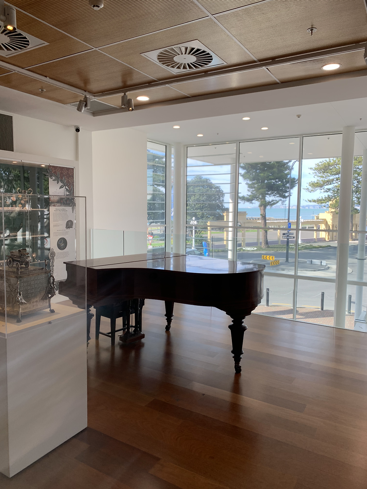 네이피어의 바다가 보이는 통창으로 그랜드 피아노까지 전시가 되어있고
