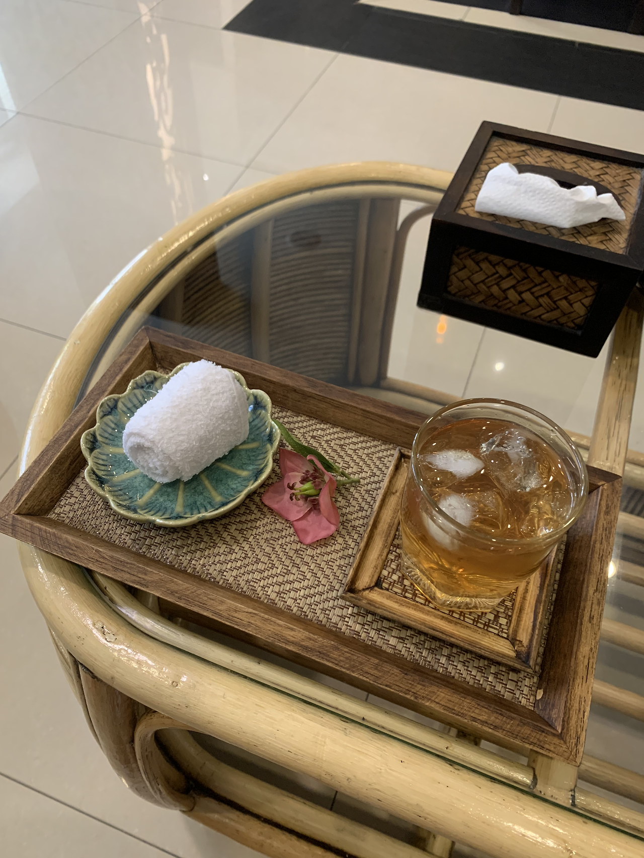 마사지는 원하는 부위와 강도등을 체크하고 시원한 차와 물수건을 내어주었어요.
