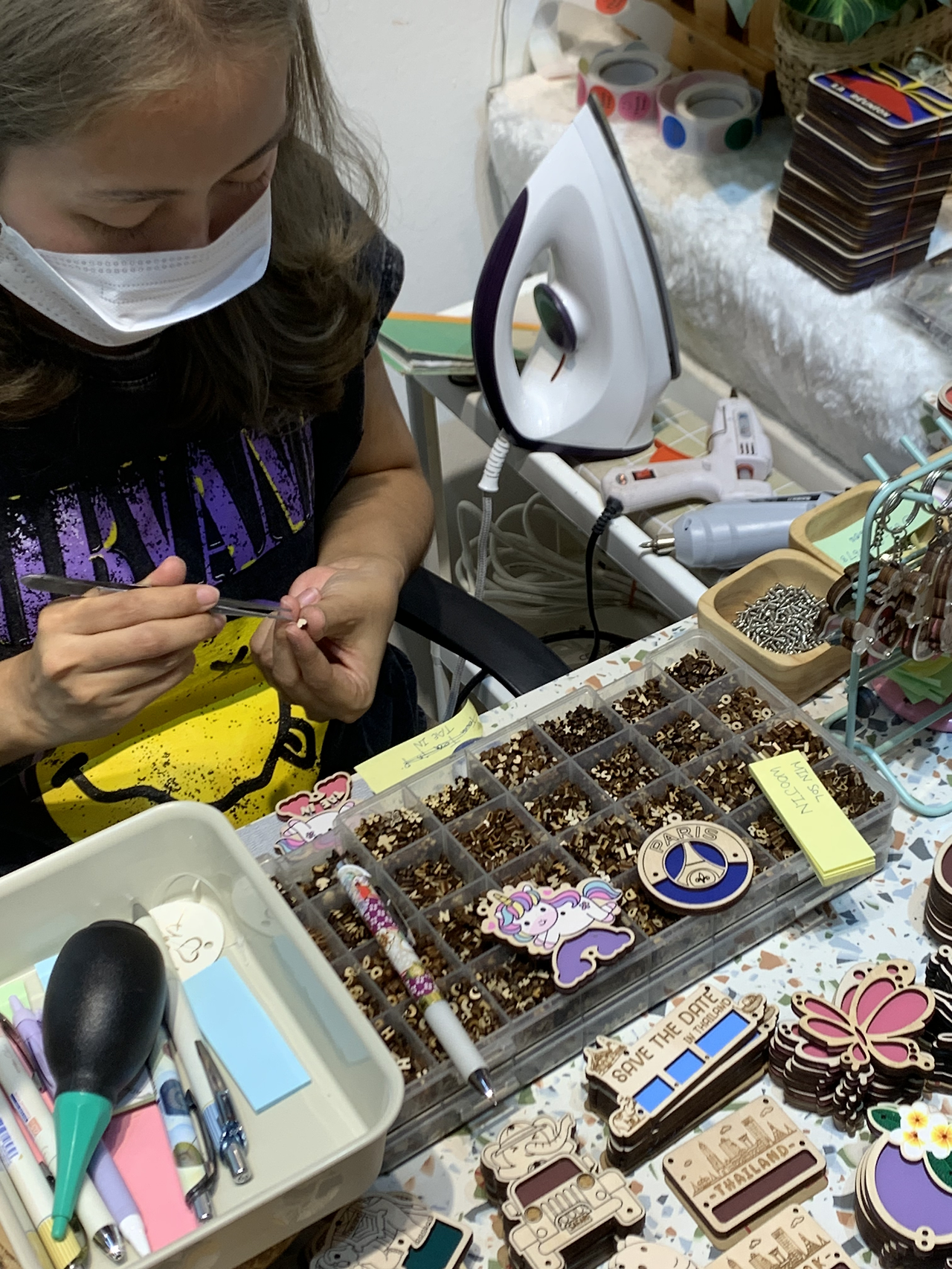 좋아하는 디자인을 골라 이름을 넣어 키링을 만들었답니다.