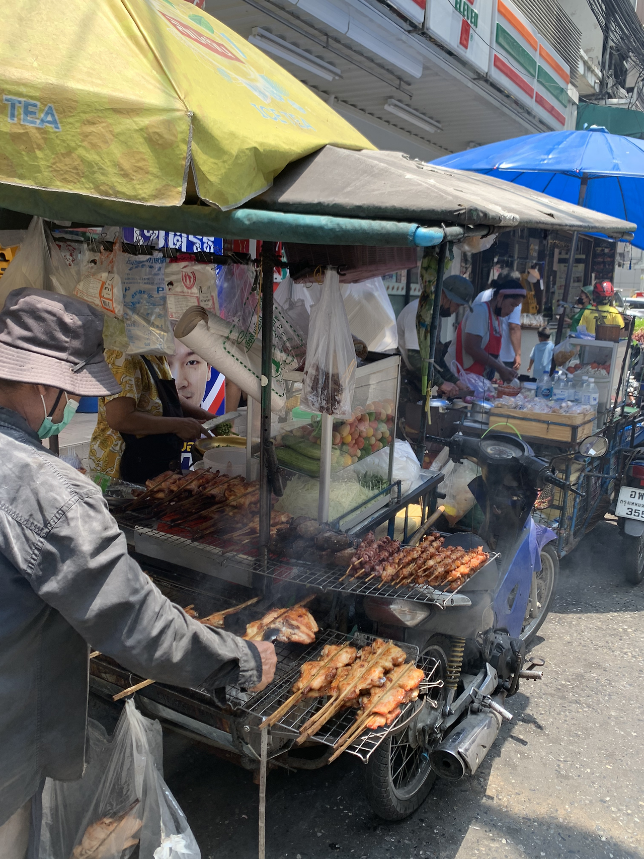 더운 방콕에 사람 많은 야시장에서 둘러앉아 먹는 랭쌥