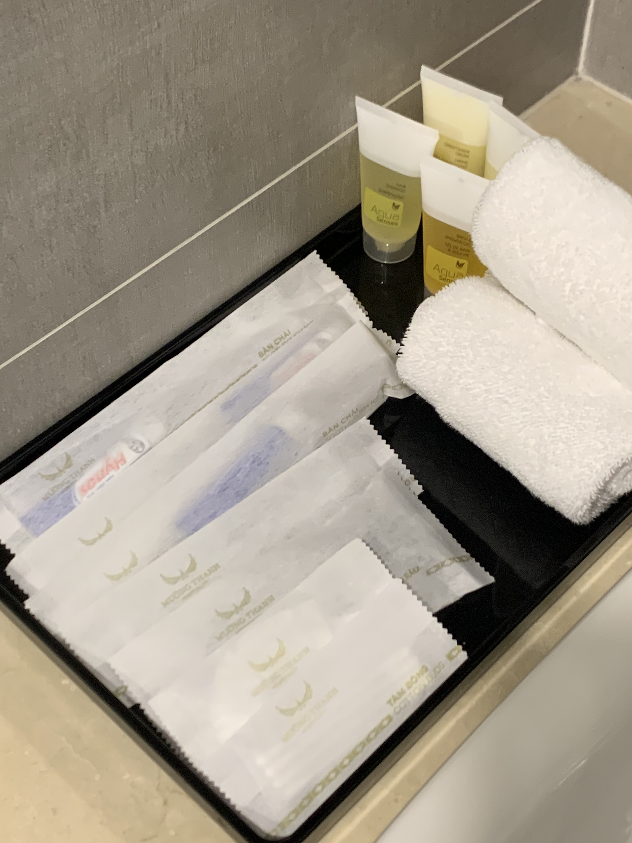 처음 보는 어메니티와 칫솔과 치약이 준비되어 있습니다.