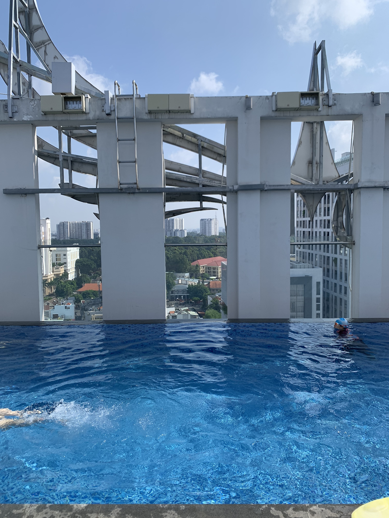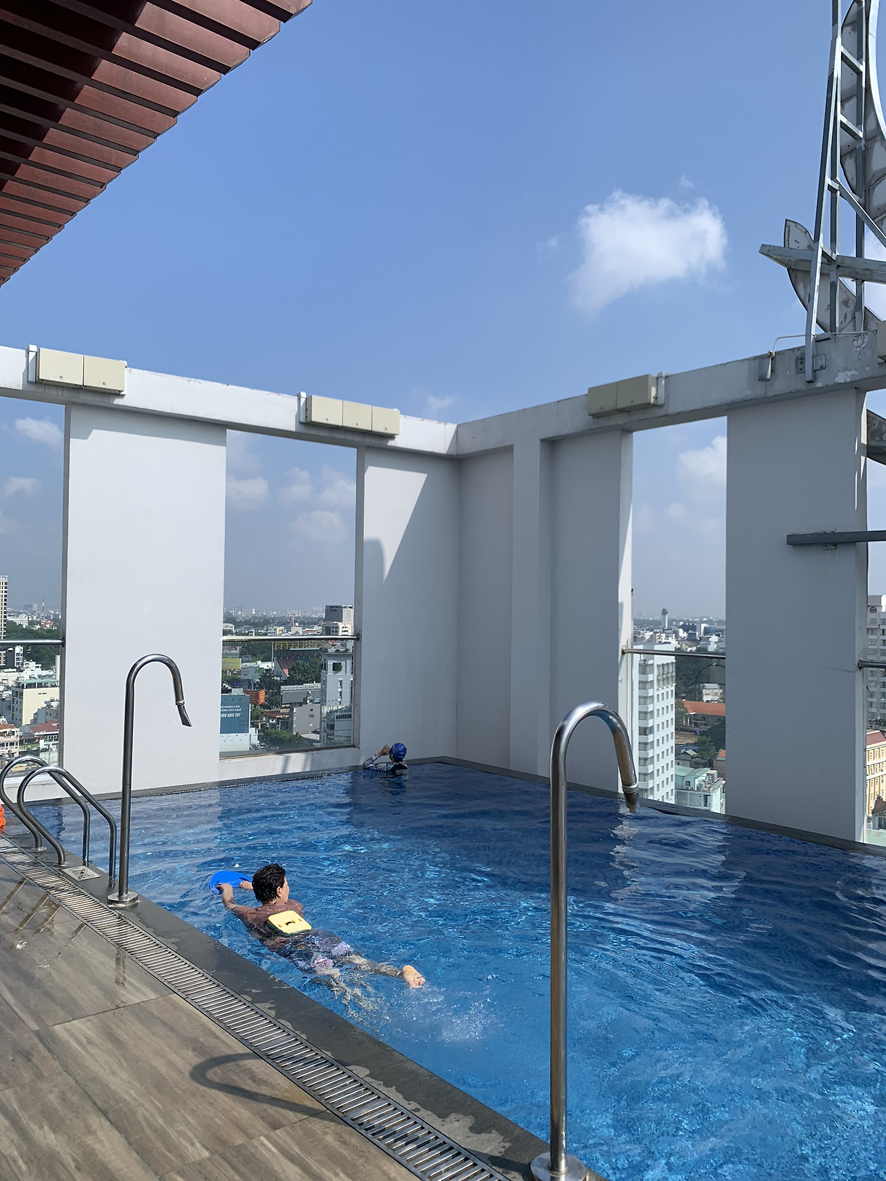 수영을 즐기자 호텔 옥상에 위치한 루프탑 풀장에서 빠르게 수영