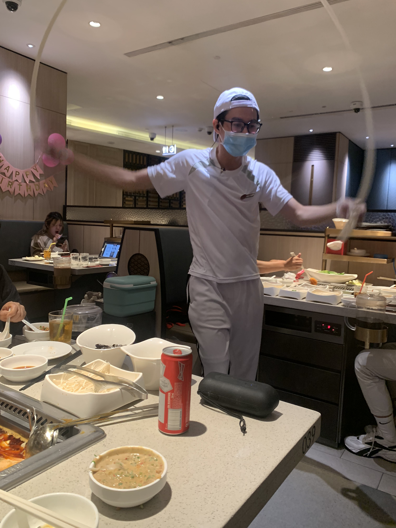 마장소스 가득 담아 오고 하이디라오의 필수코스인 춤추는 면 주문