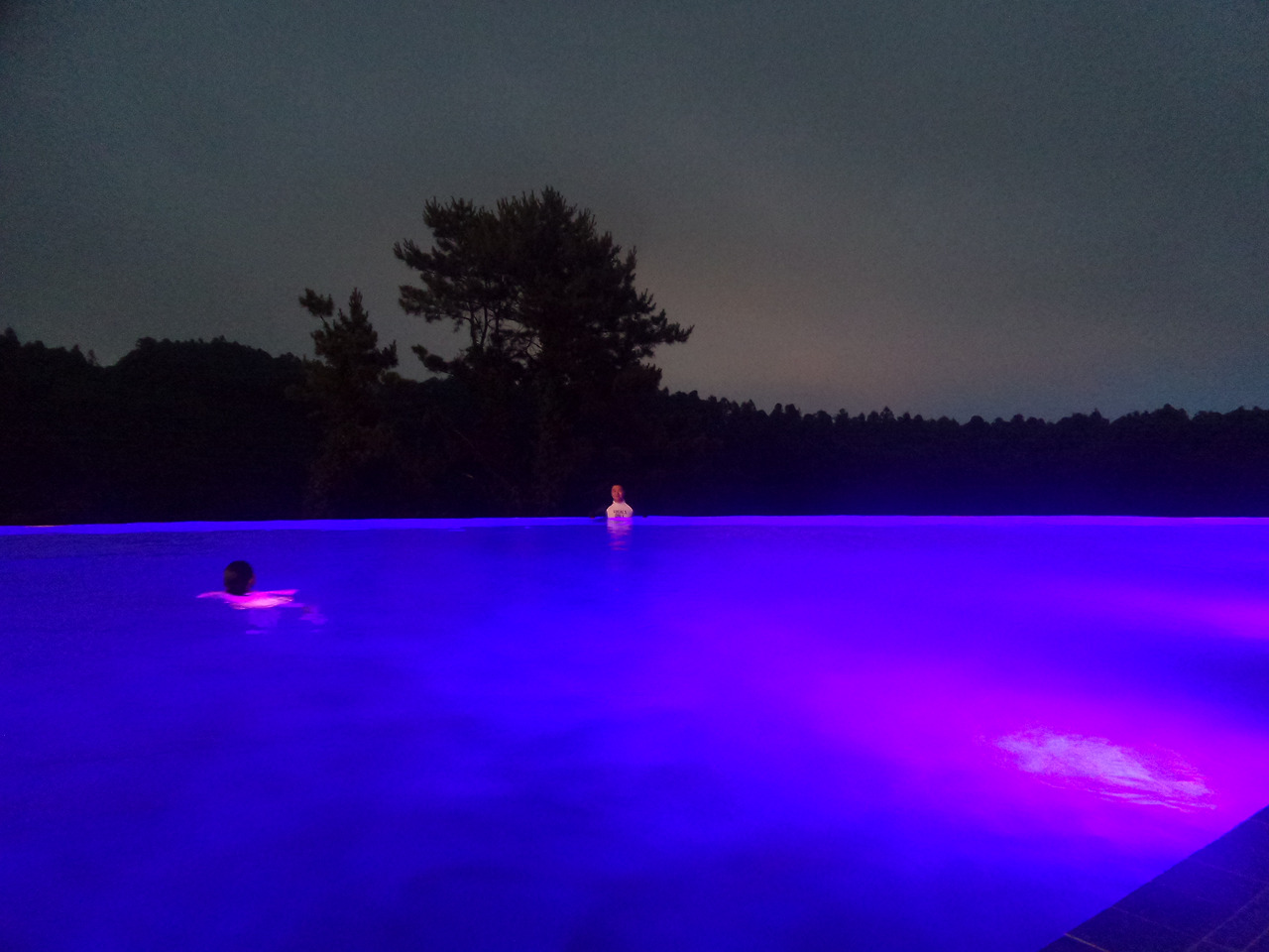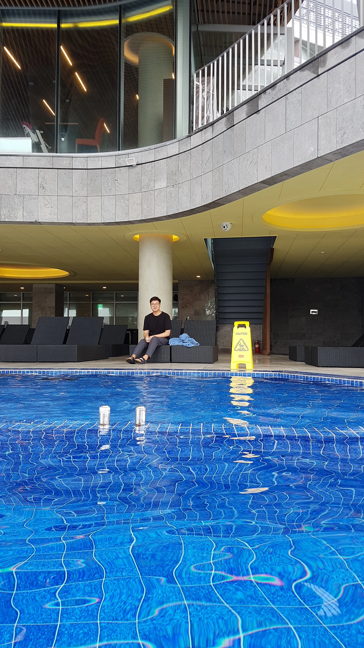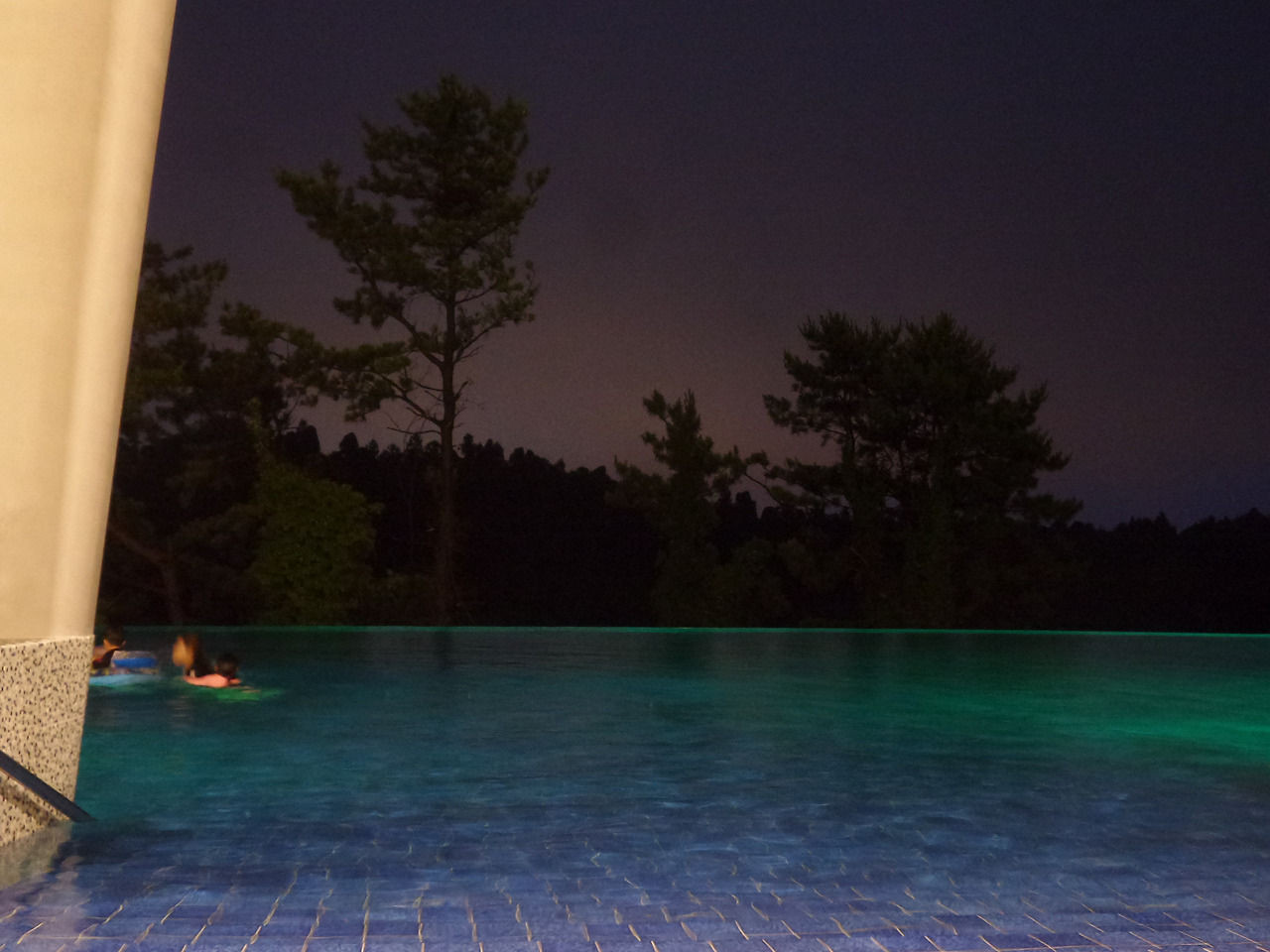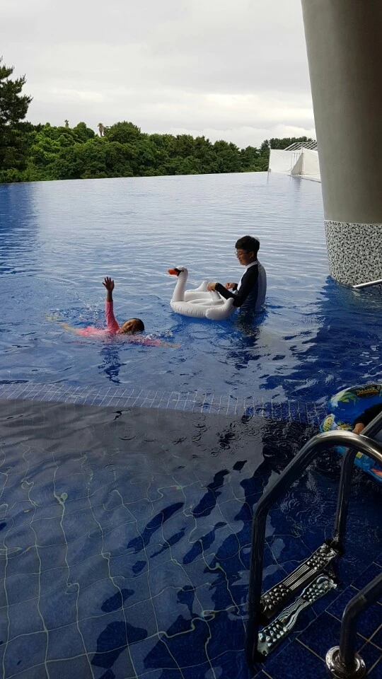 저녁이 되니 비가 소강되어 수영장으로 달려왔어요.