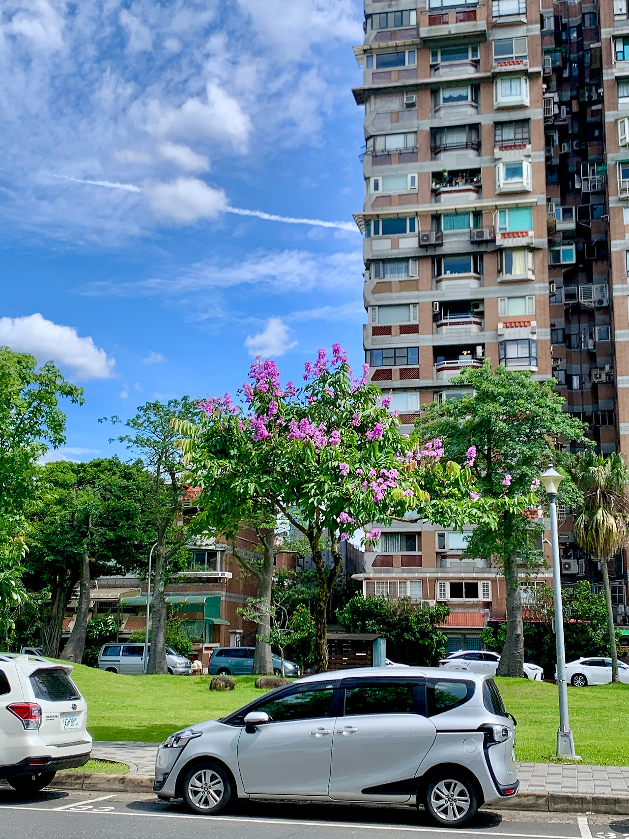 저 나무에 보라색 꽃이 이뻤는데 타이베이 곳곳에서 보였답니다.