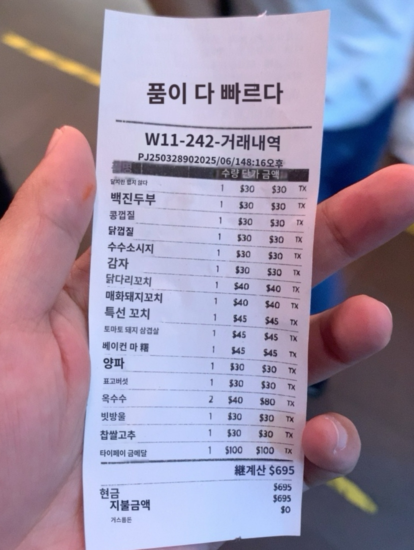야채류는 모두 맛있었고 그중에 두부피와 어묵이 쫀득하니 너무 맛있었습니다. 꼬치에 기본으로 뿌려지는 시즈닝이 질리지 않고 맛있었습니다.