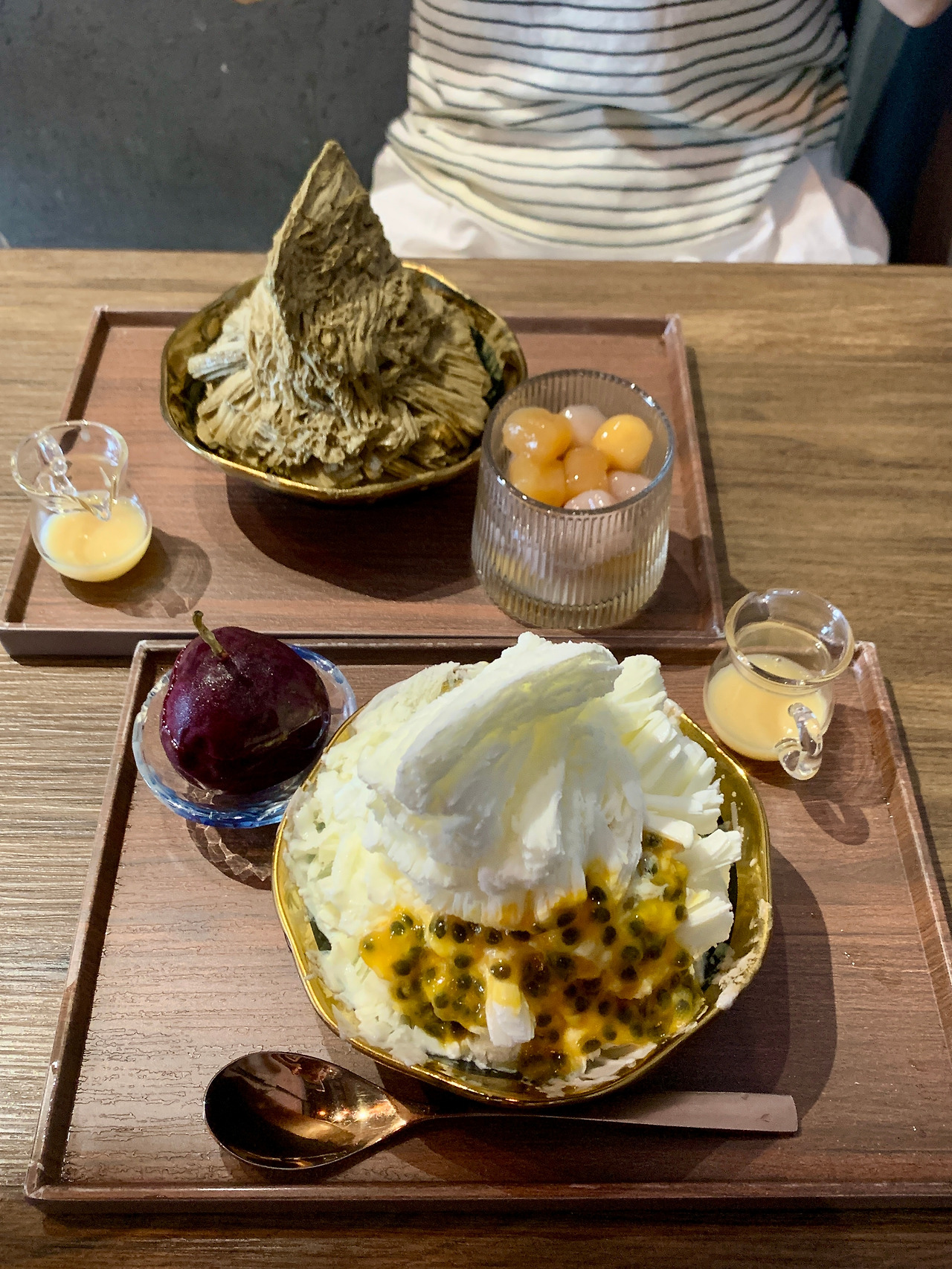제일 기대되었던 패션프루츠 빙수와 인당 최소 100 타이완 달러 주문을 해야 한다길래 호지차 빙수도 주문했어요.