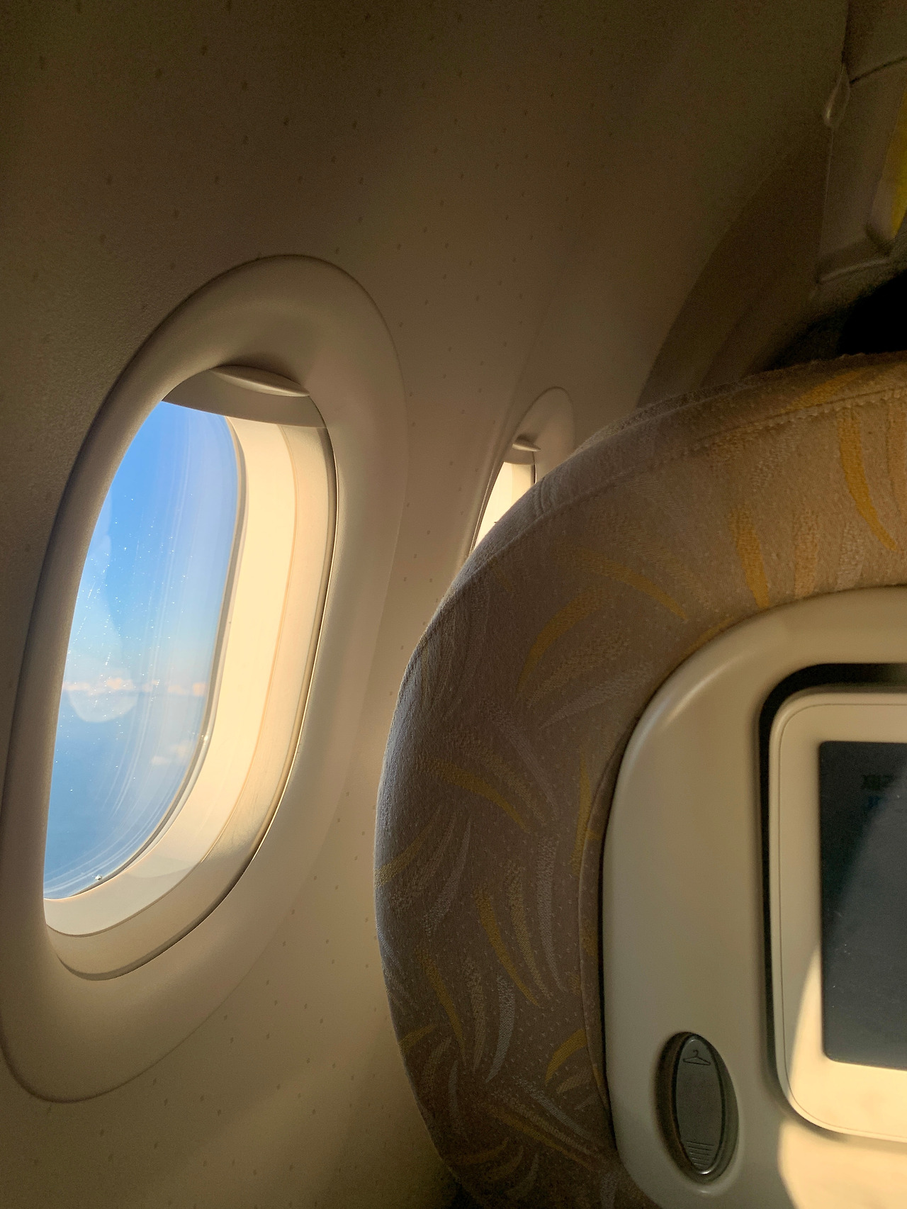 저는 공항이 보이고 창 측에 자리를 안내받았답니다.