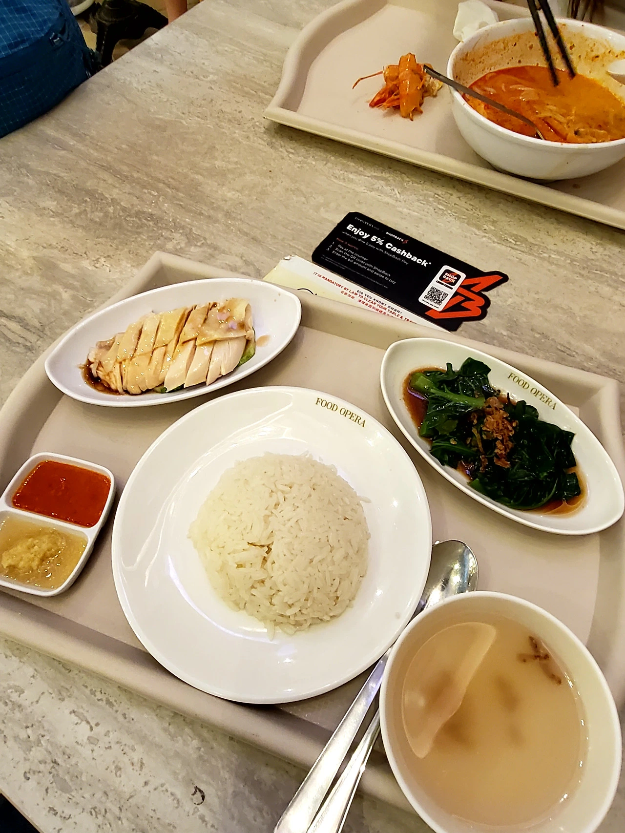 점심은 간단히 쇼핑몰 지하에 있는 푸드코트에서 저는 하이난식 치킨라이스