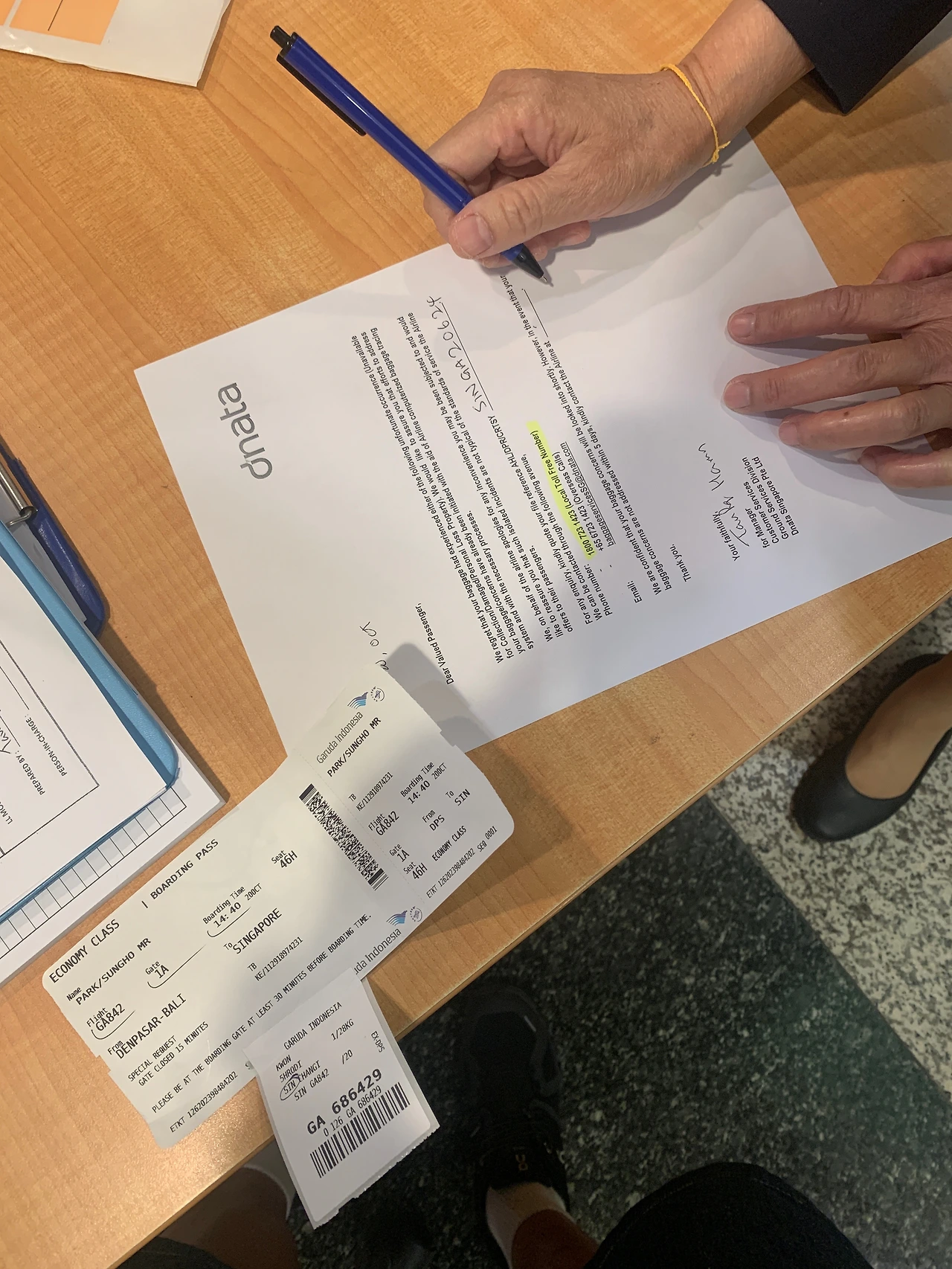사진으로 미리 증거를 남겼고 카운터에 보여주니 서류를 작성해 주었답니다.