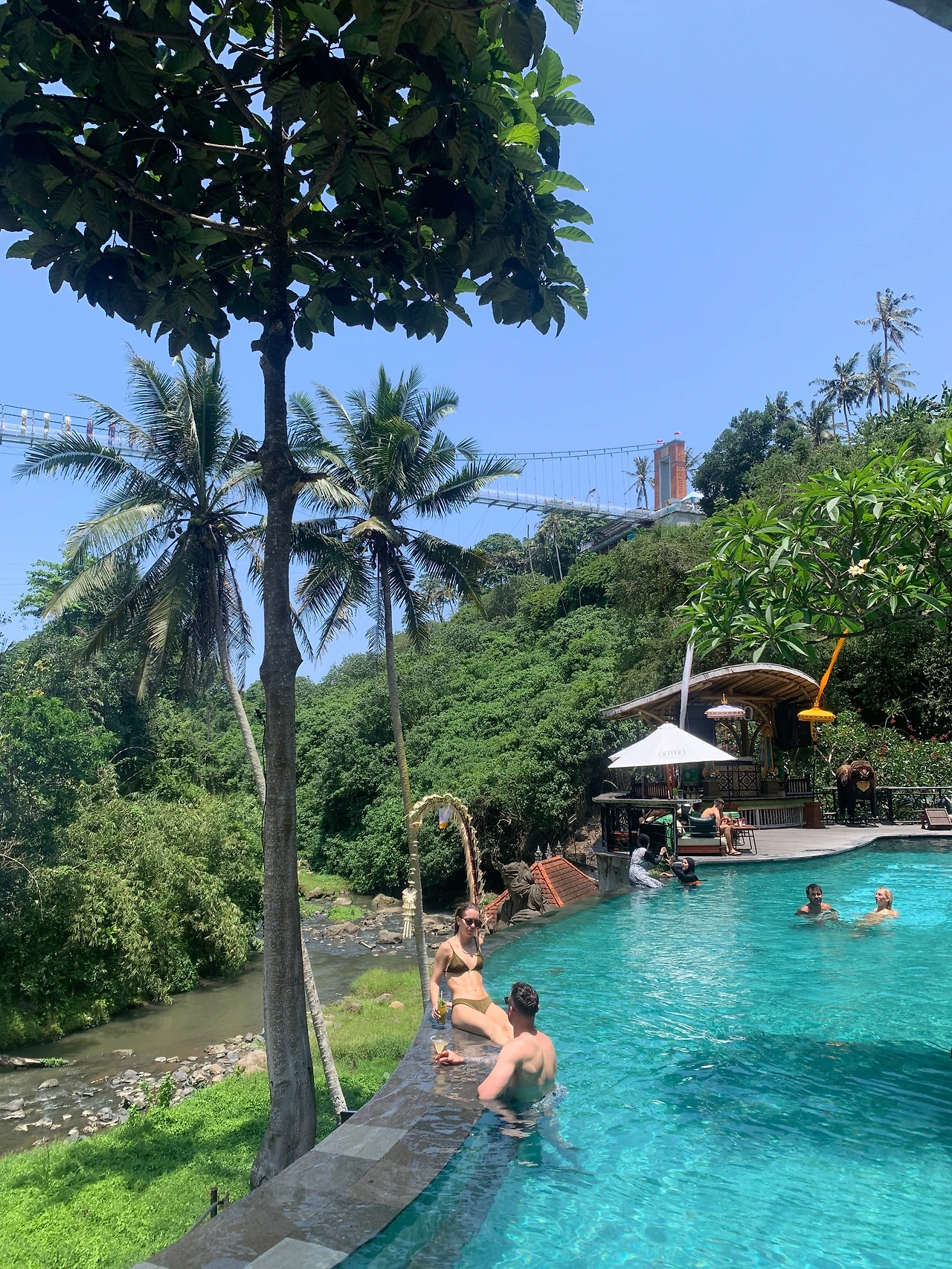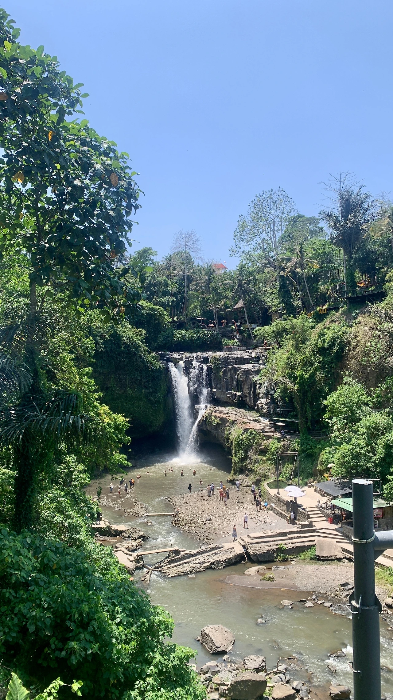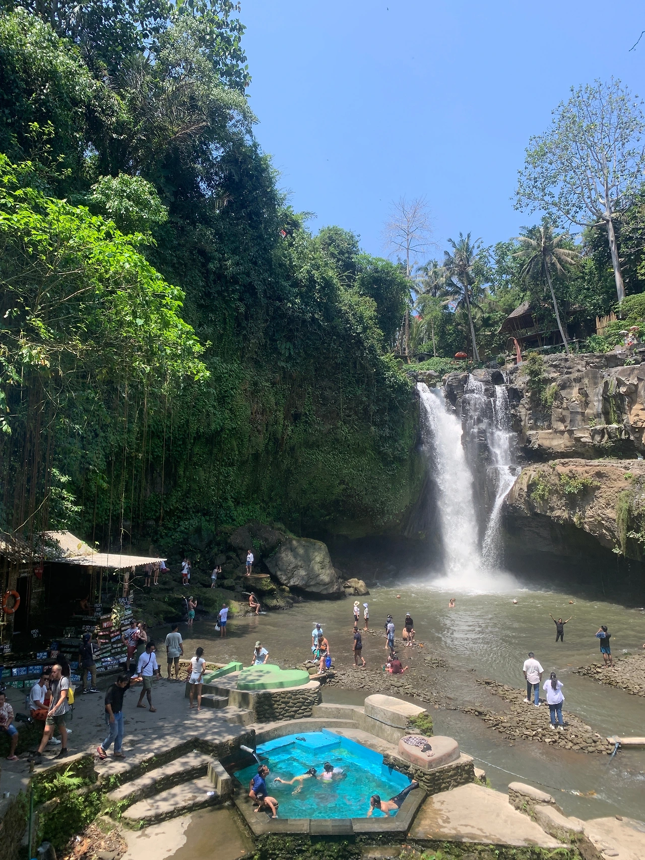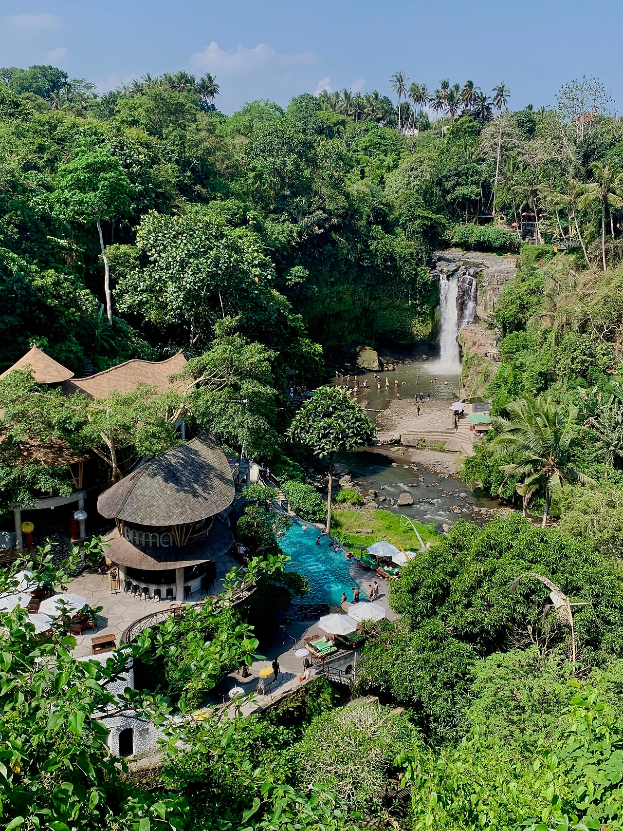 수영장에서 보이는 뜨그눙안 폭포가 장관이죠. 폭포를 즐기는 분들도 많아요.