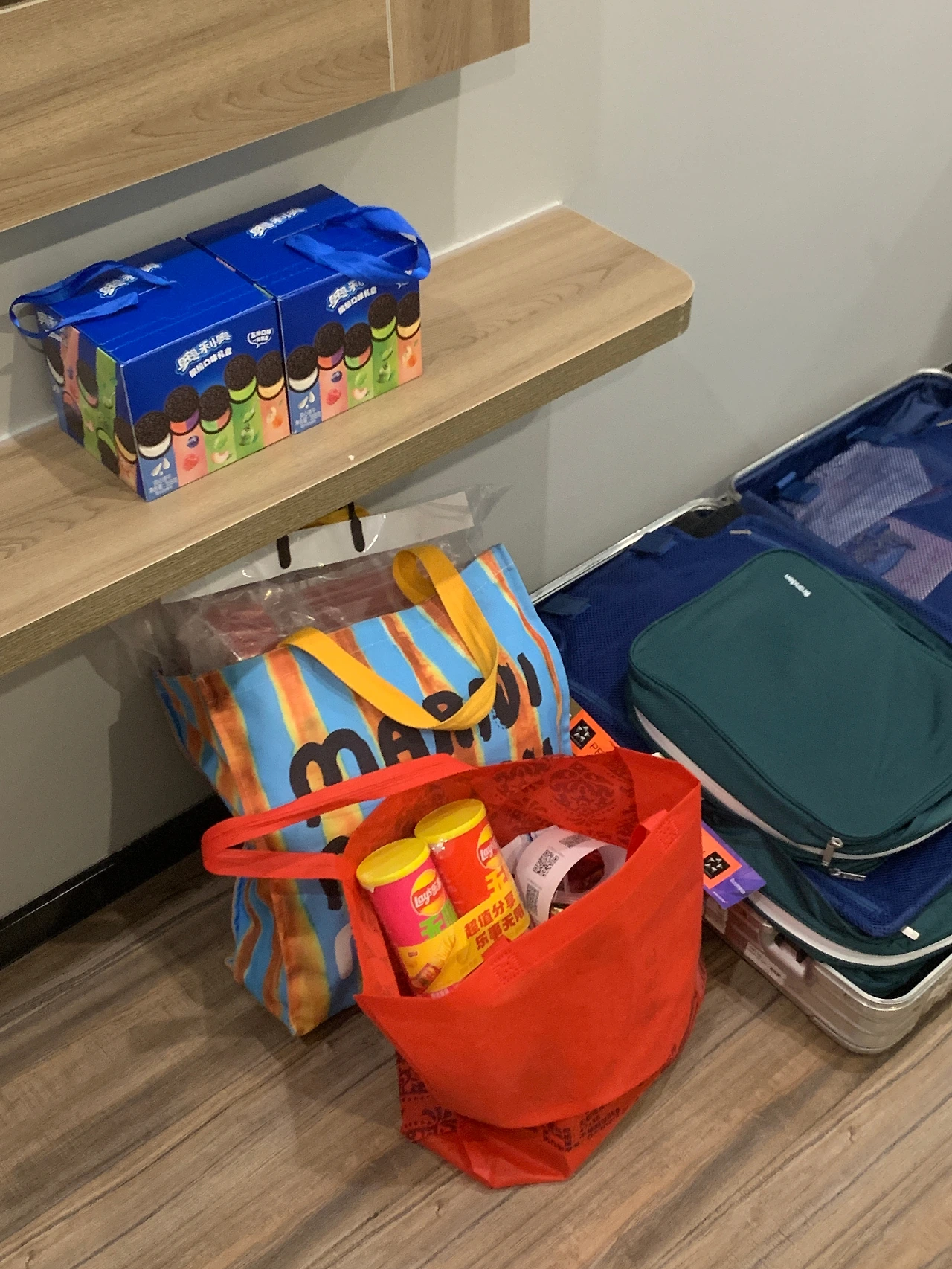 앱으로 주문하고 하나씩 구매했던 제품들 정리하면서 캐리어 용량을 체크했습니다.