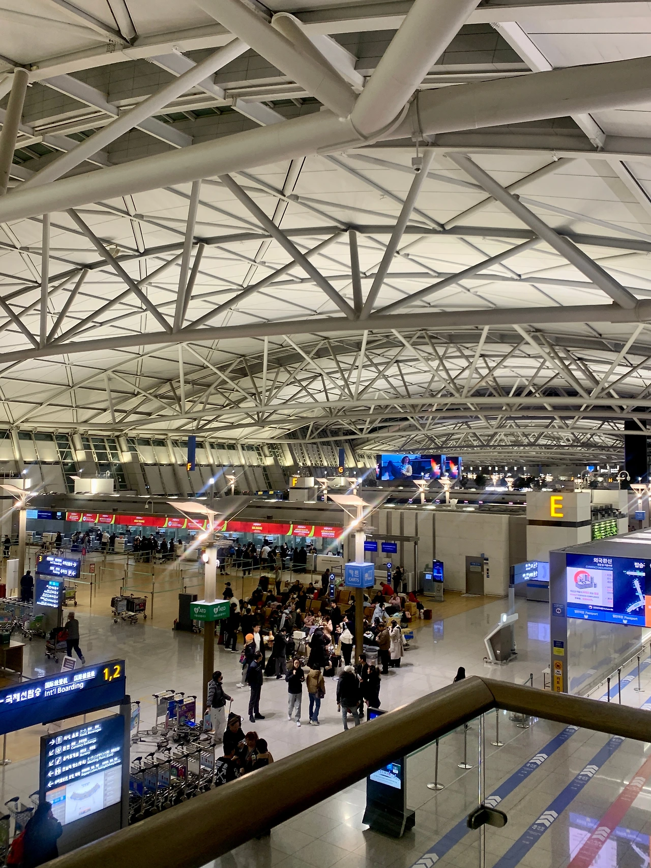 아시아나항공이 제2터미널로 이동해서 조금은 한산한 느낌이었어요. 체크인 시간이 꽤 남아 친구 기다리기.