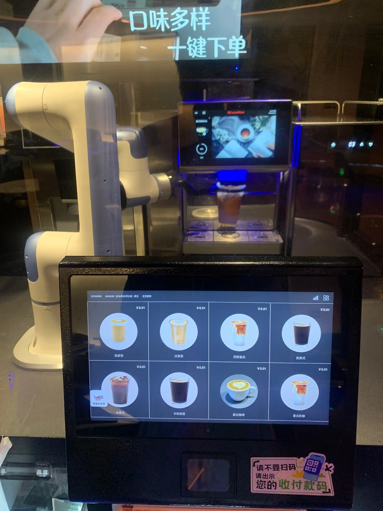 정말 많은 종류의 음료가 무료이지만 로봇이 만들어주는 커피는 0.1위안 돈을 받아요. 한국인은 아아죠.