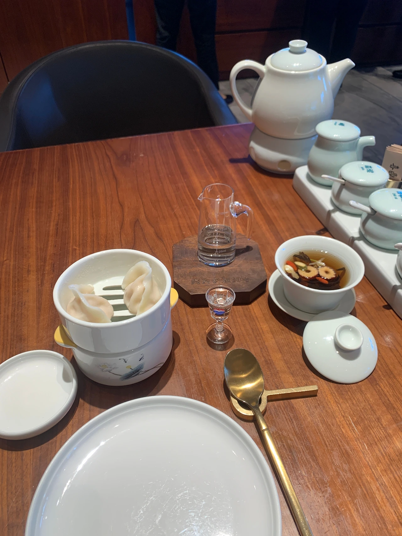 차를 내어주시고 주문한 성게만두 두 알이 나왔습니다.