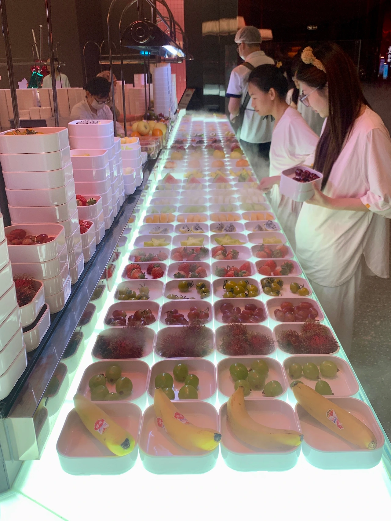 시간대별로 제공하는 메뉴가 있고 아침에서 조식뷔페도 제공이 된답니다. 편의점보다 많은 음료가 모두 무제한 공짜 그리고 과일뷔페도 24시간이 제공이 되고 하겐다즈 아이스크림도 무제한 공짜 정말 대륙의 스케일에 놀랐어요.