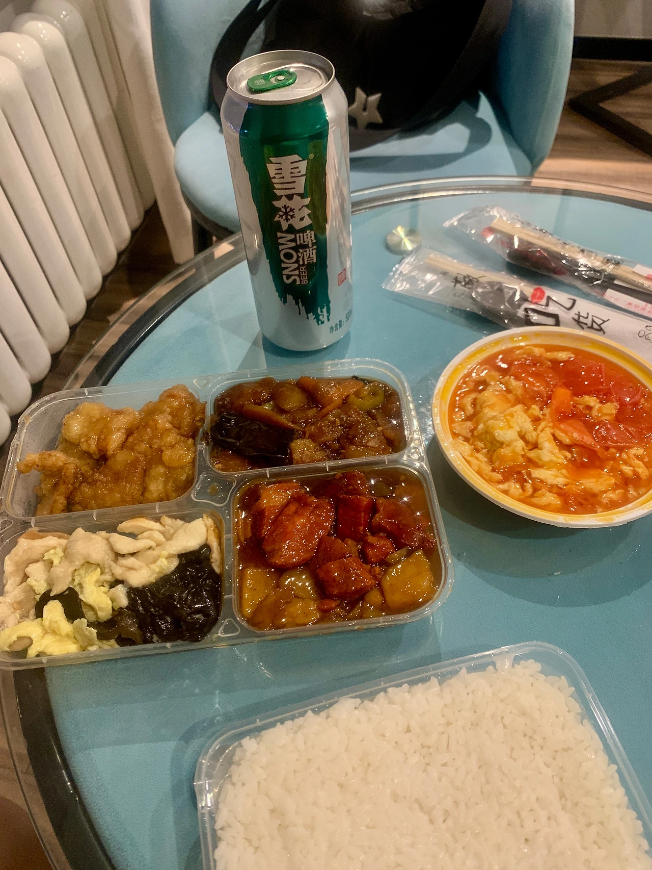 첫날이었고 대구에서 새벽부터 이동해서 대련까지 왔더니 너무 피곤해서 호텔에서 낮잠 자고 그 추위에 맞서고 싶지 않아서 저녁은 배달로 대체했답니다.