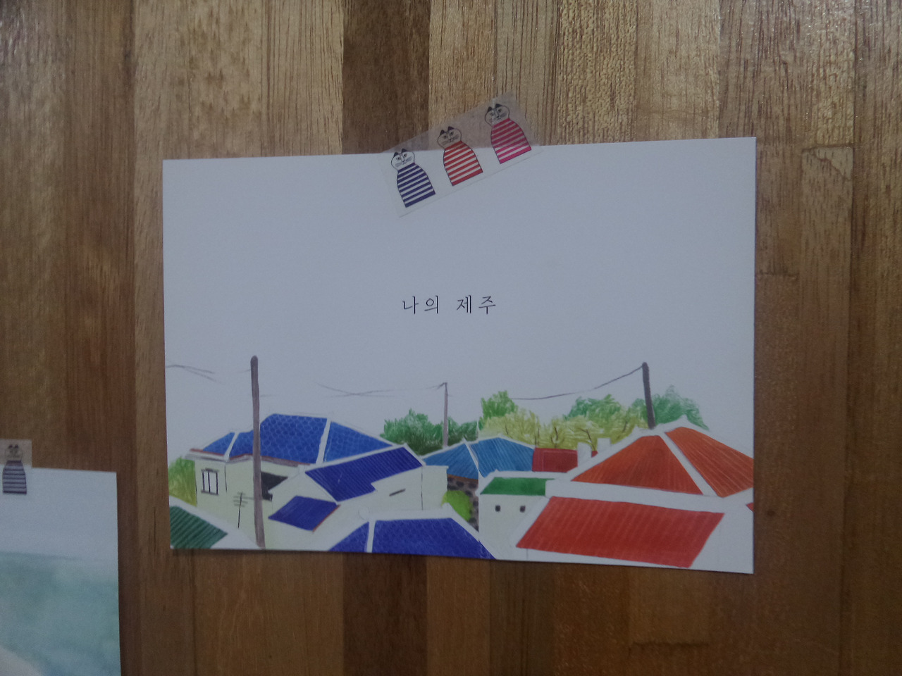 이런 엽서들이 붙어있더라고요.