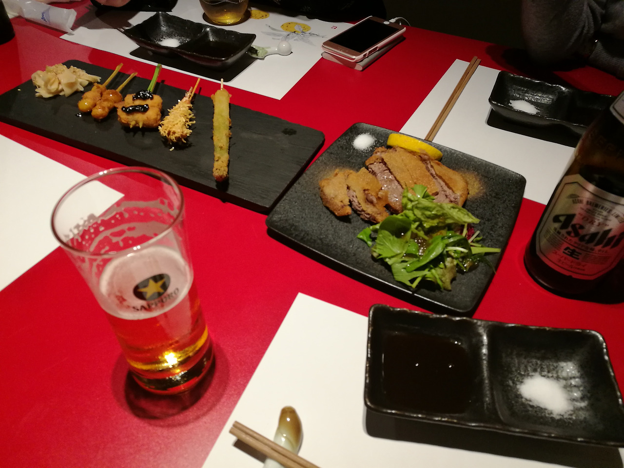 규카츠와 꼬치구이로 간단히 맥주 마시고 왔어요.