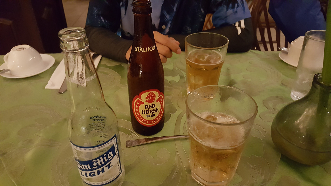 24시간 오픈하는 brisa 레스토랑에 가서 필리핀 맥주 마시기