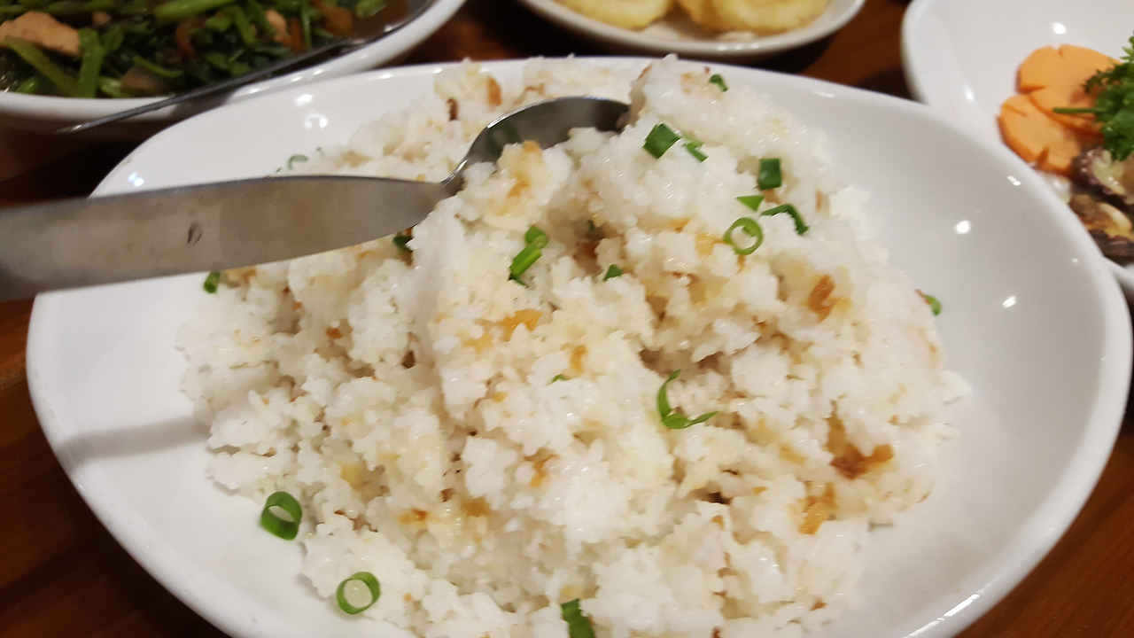 망고 셰이크도 먹고 갈릭 라이스도 빠질 수 없습니다.