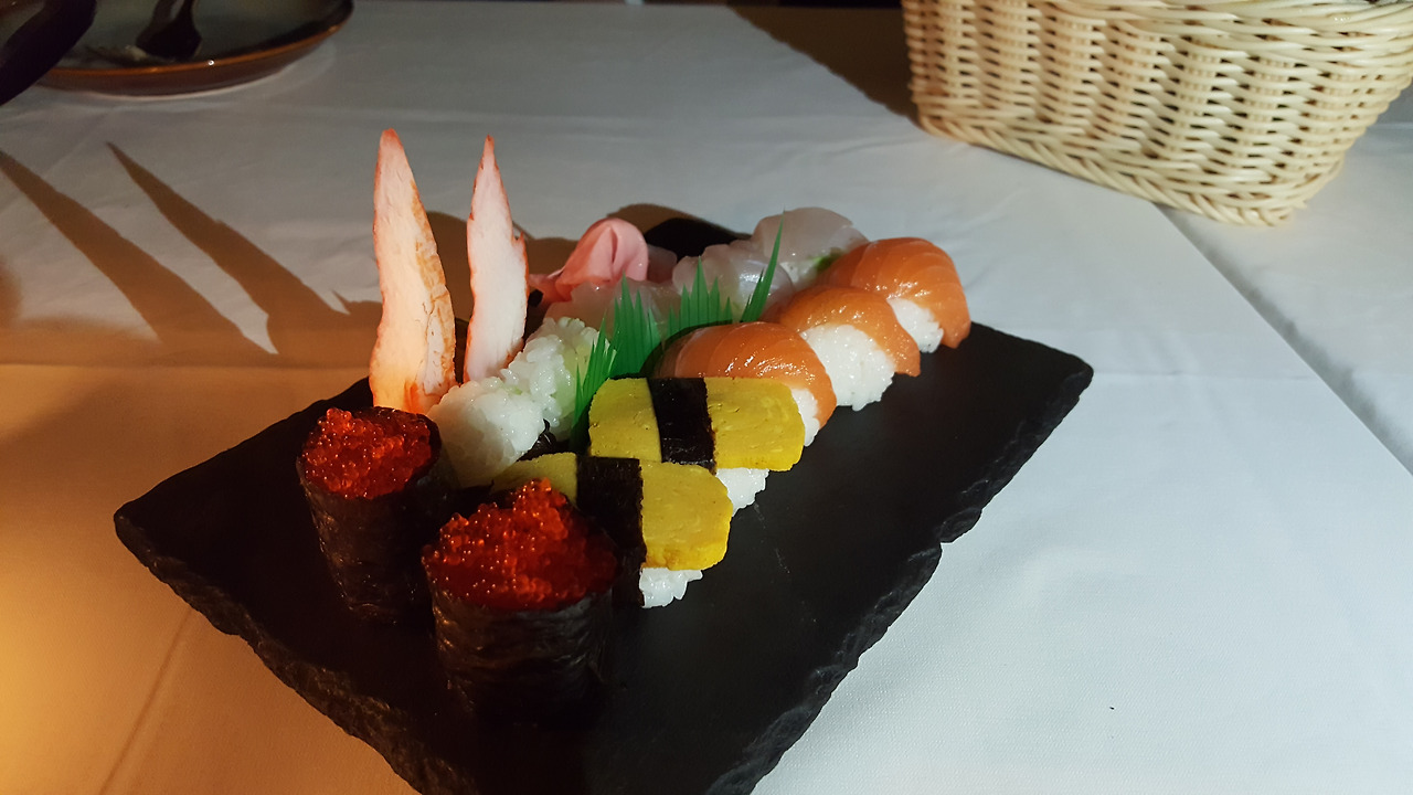 일단 모둠초밥 2 접시와 시푸드 플레이트 4인으로 시키고