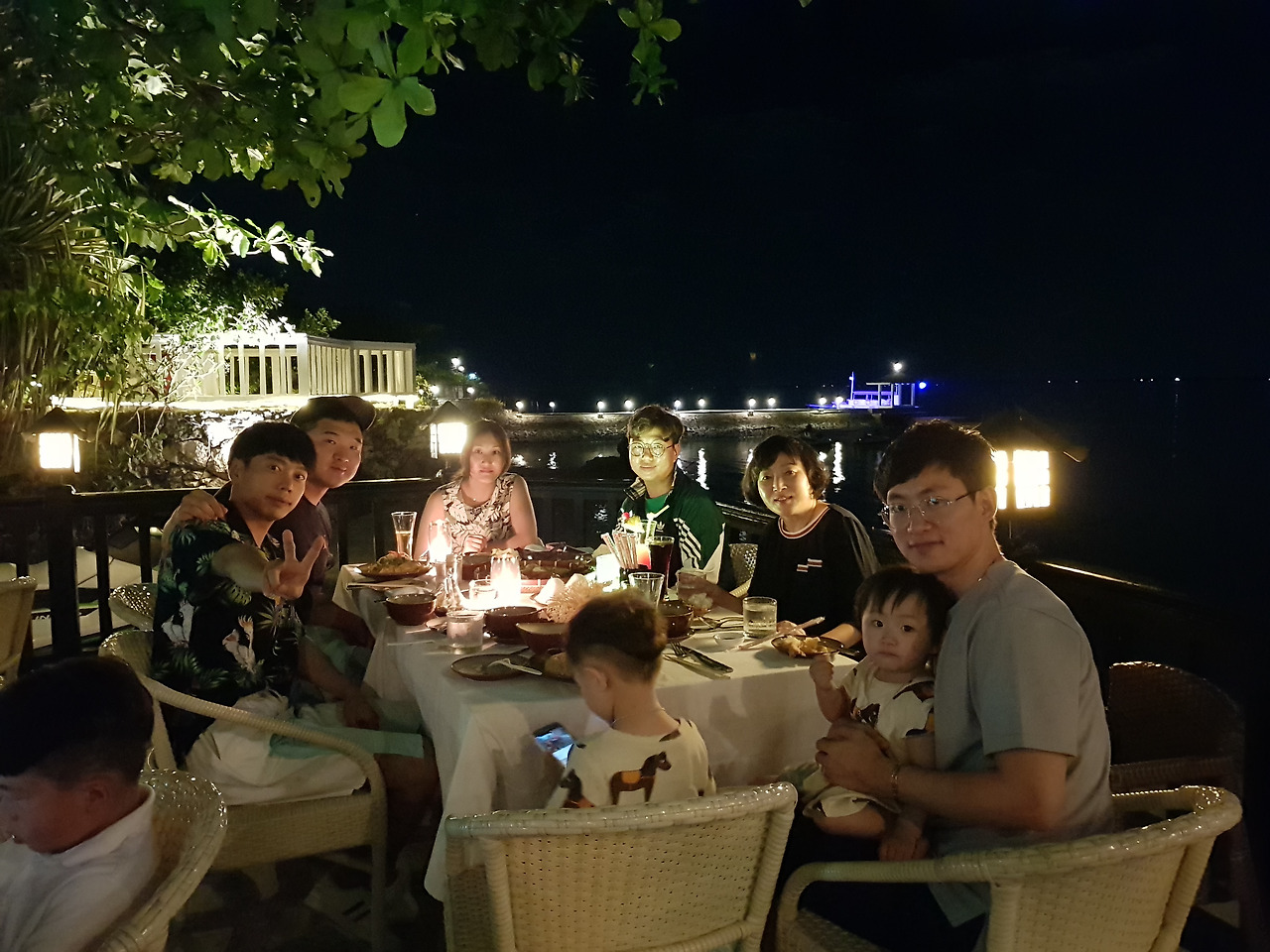 야외 바닷가 보이는 테라스에서 저녁을 먹었답니다.