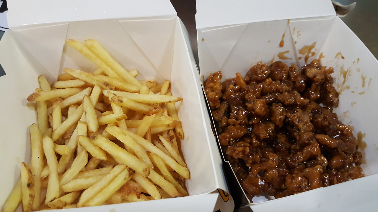 주문은 간단히 피자와 프렌치프라이 그리고 한국식 치킨이었는데