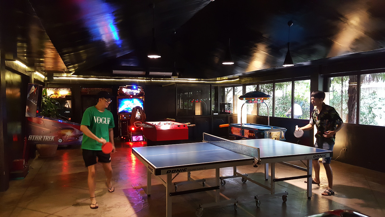 이 곳에 탁구대와 당구대도 있고 오락시설이 있어서