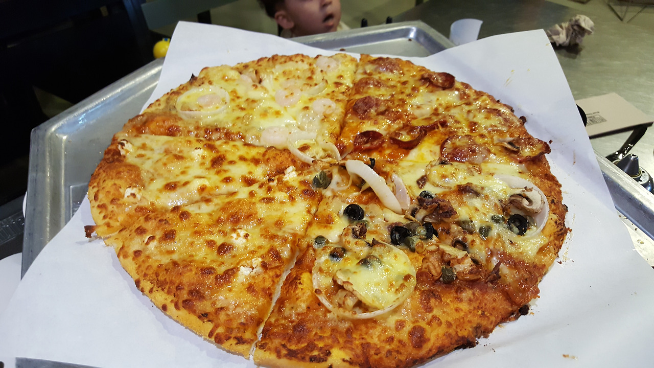 피자는 4가지 종류가 들어간 포시즌 피자였나? 를 시켰는데