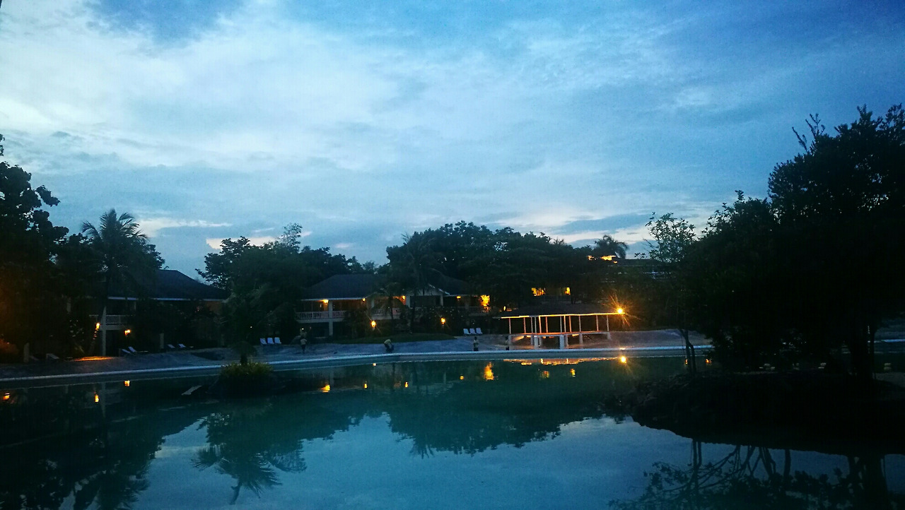 저녁에도 참 이쁘고 밤에도 수영장 이용이 가능 한 이 곳