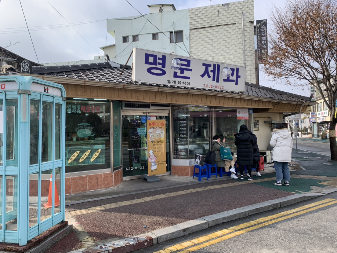 오는 길에 들렀던 명문 제과는 빵이 나오는 시간이 정해져 있었어요.