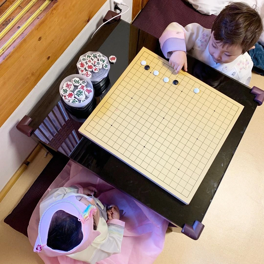 바둑알 만지며 노는 모습을 보니 너무 사랑스럽고