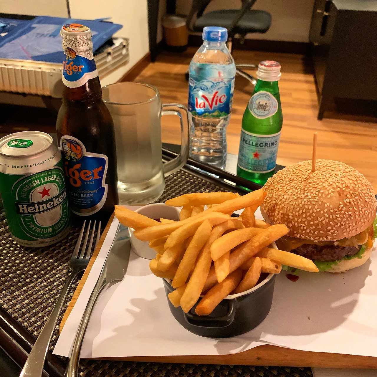 역시나 룸서비스는 치즈버거와 맥주죠.