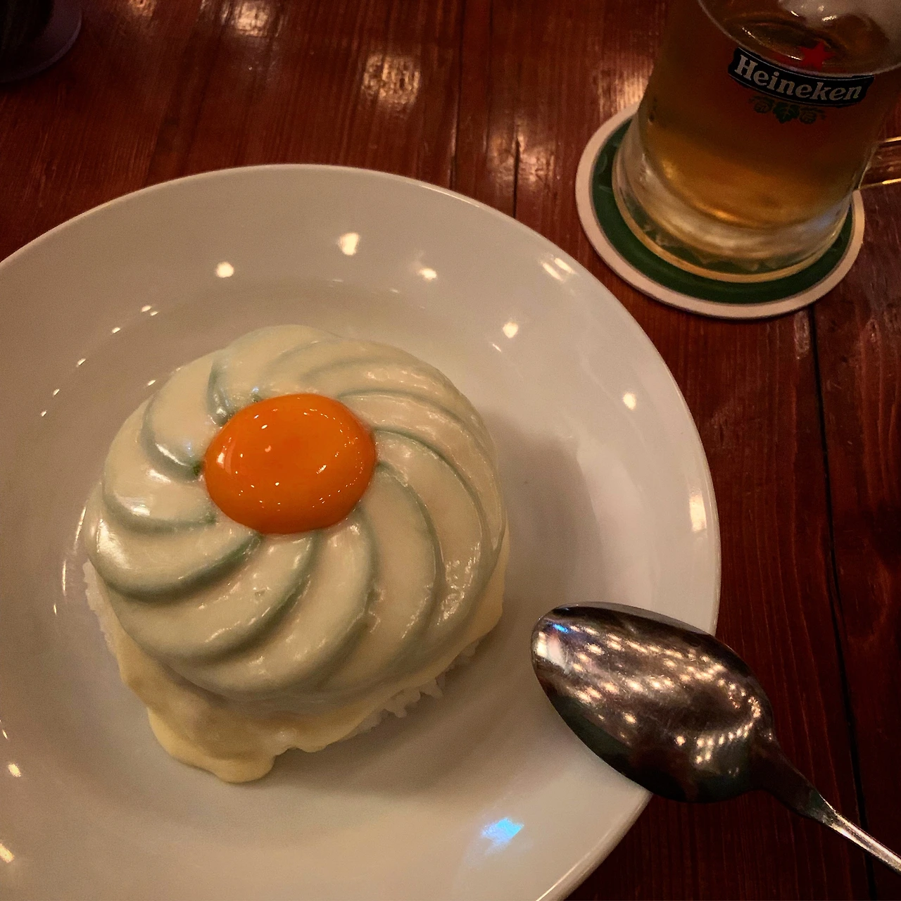 고이 모셔두었던 노른자를 그위에 톡 올려주면 끝