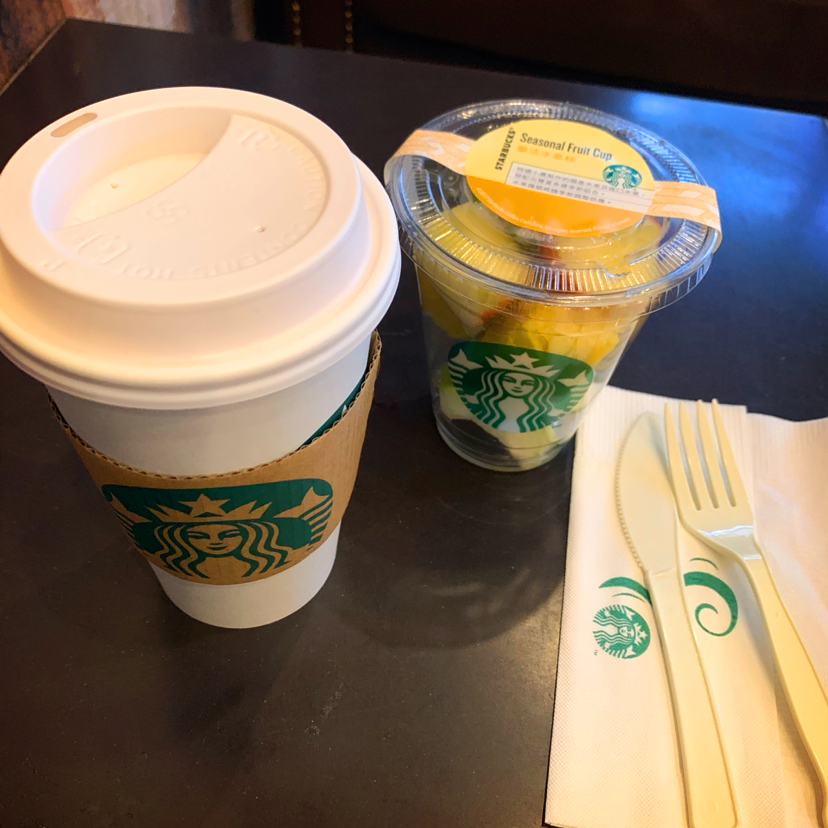 따뜻한 차 한잔과 비타민을 보충하기 위한 과일 구매