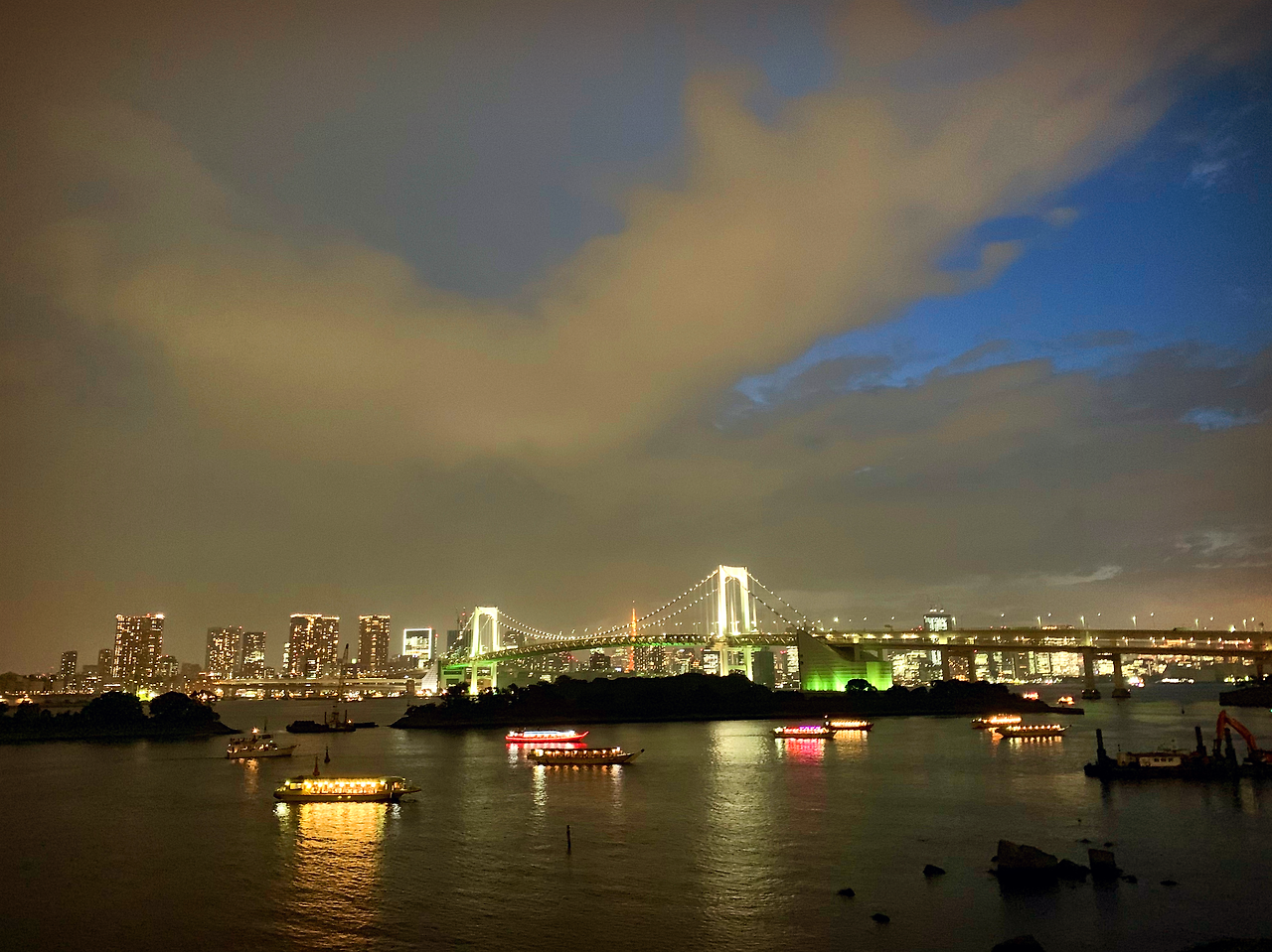 오다이바에서 바라보는 레인보우 브릿지와 도쿄타워