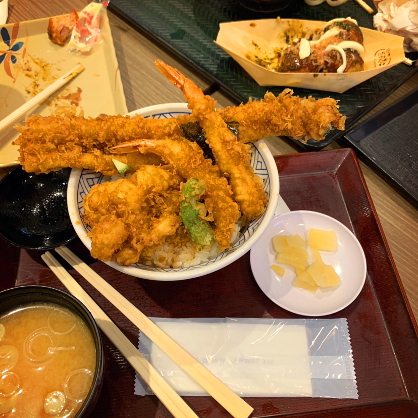 저녁은 간단히 텐동과 우동 그리고 타코야끼를 주문했답니다.