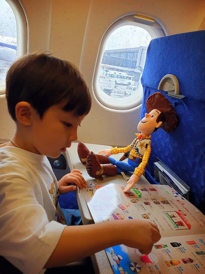 우진이네는 비행기에 탑승을 했다고 사진을 보내주었어요.
