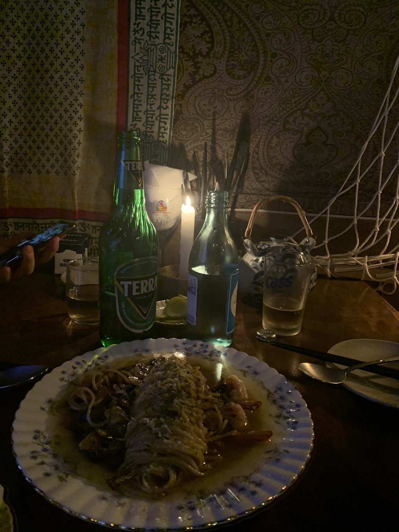 보말 오일 파스타와 새우튀김은 꼭 주문을 해요.