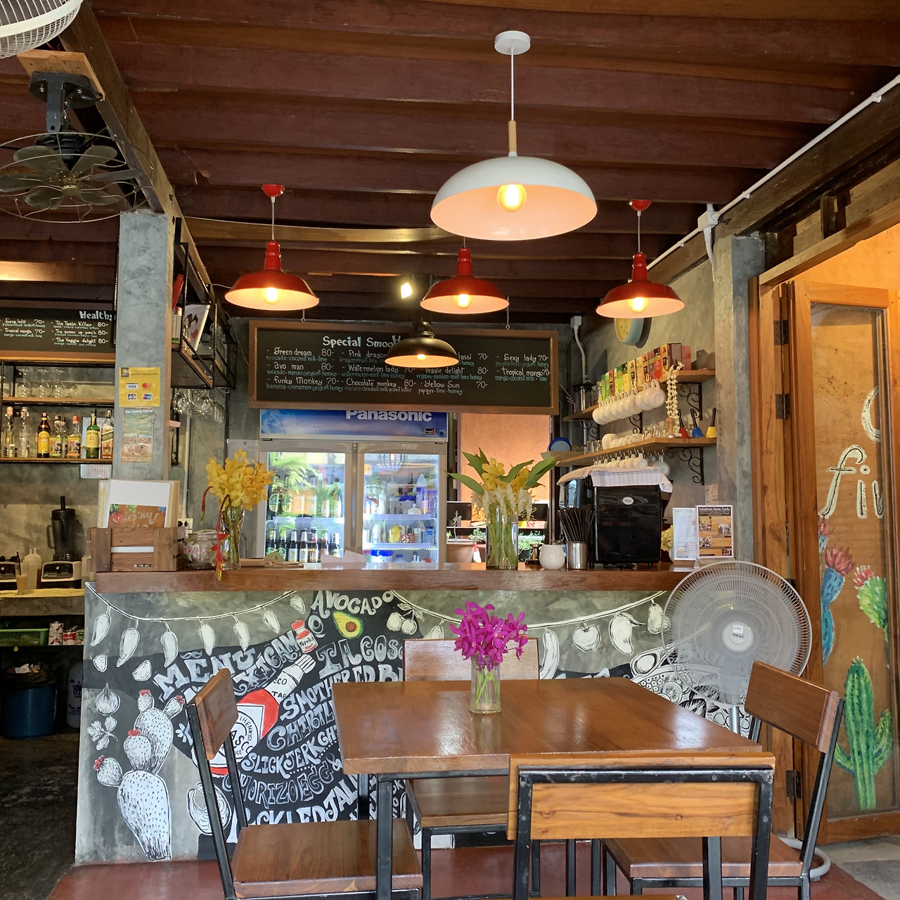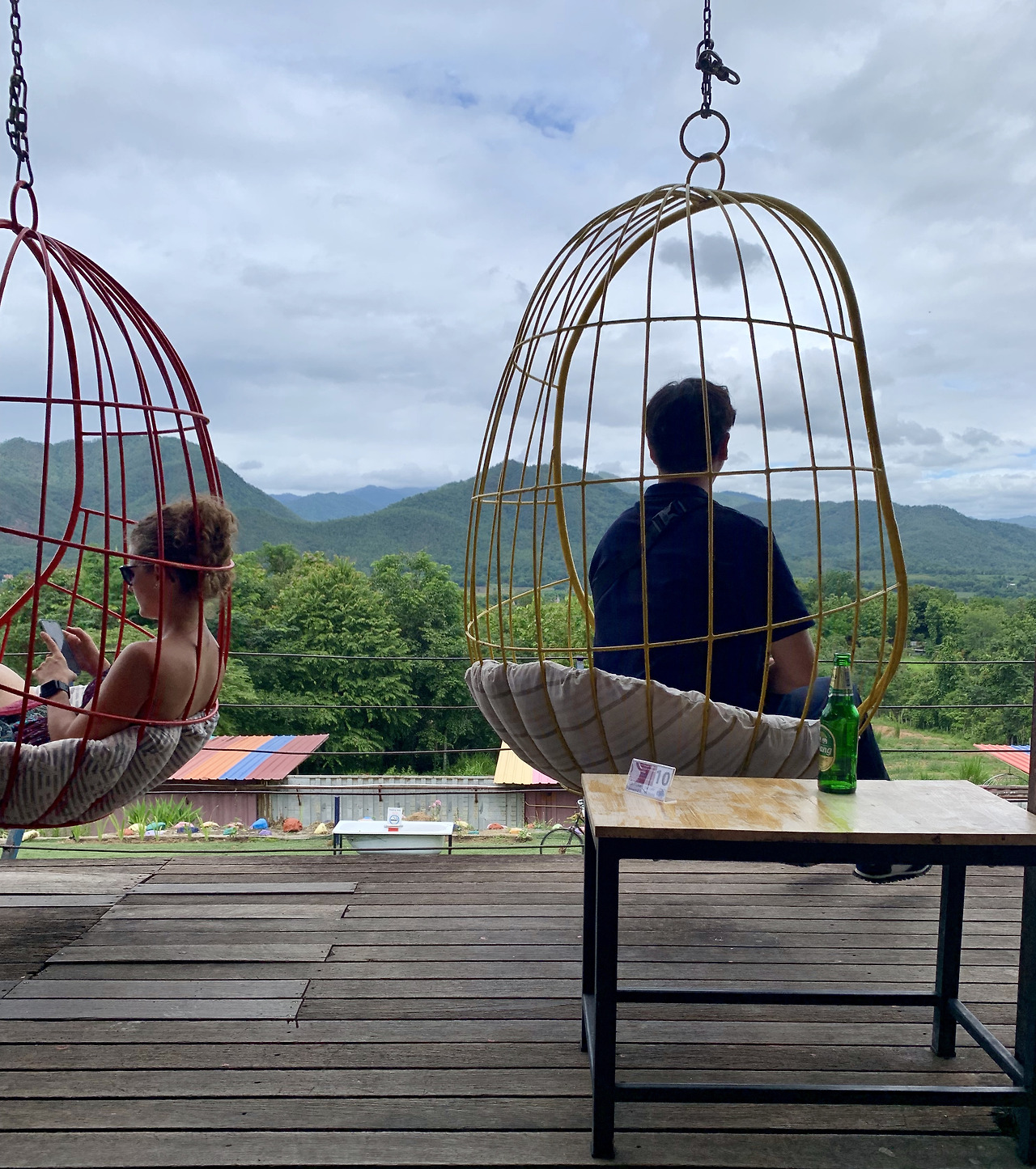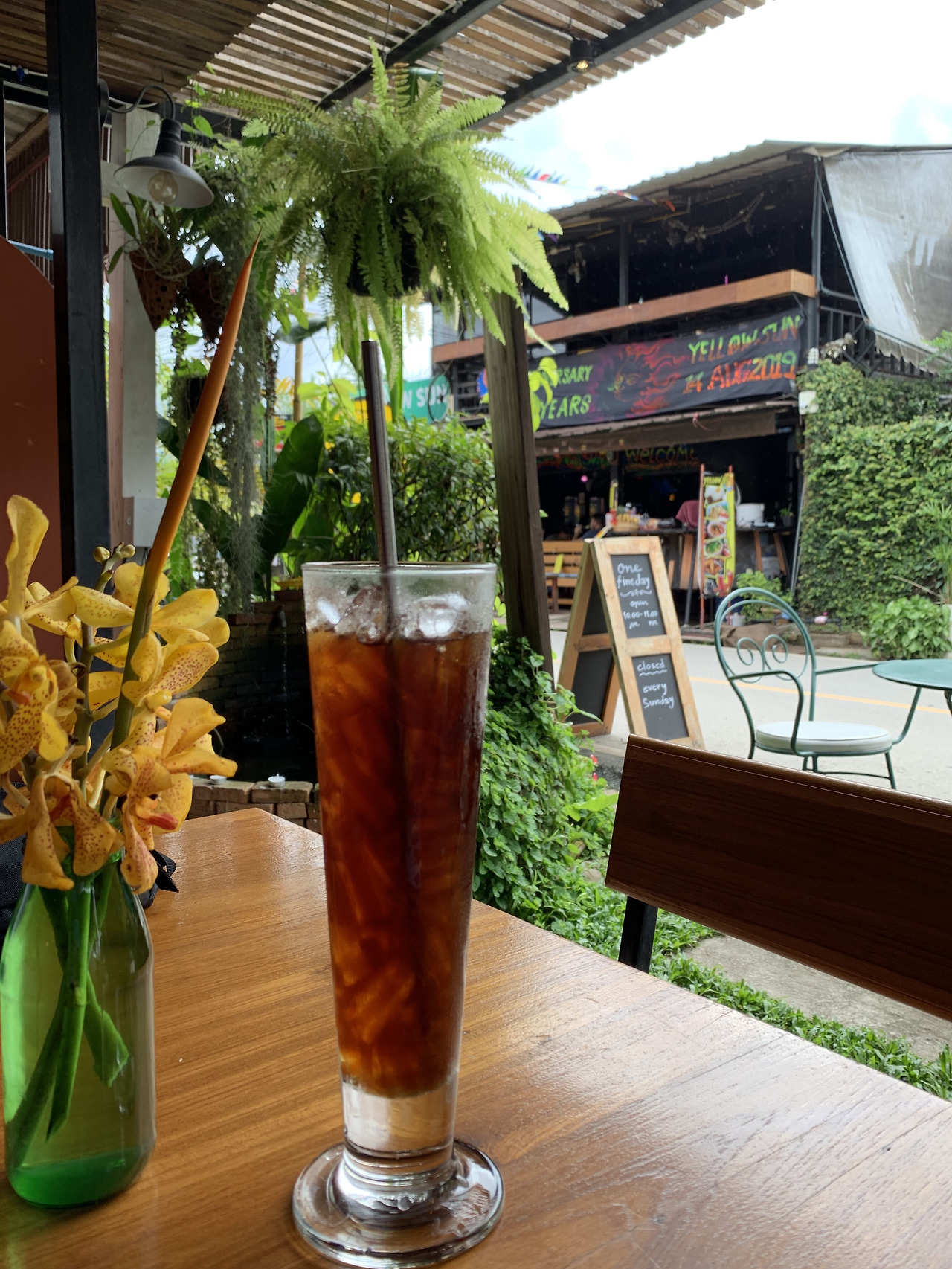 빠이의 푸르른 산들을 바라보며 커피 한잔 주문했어요.