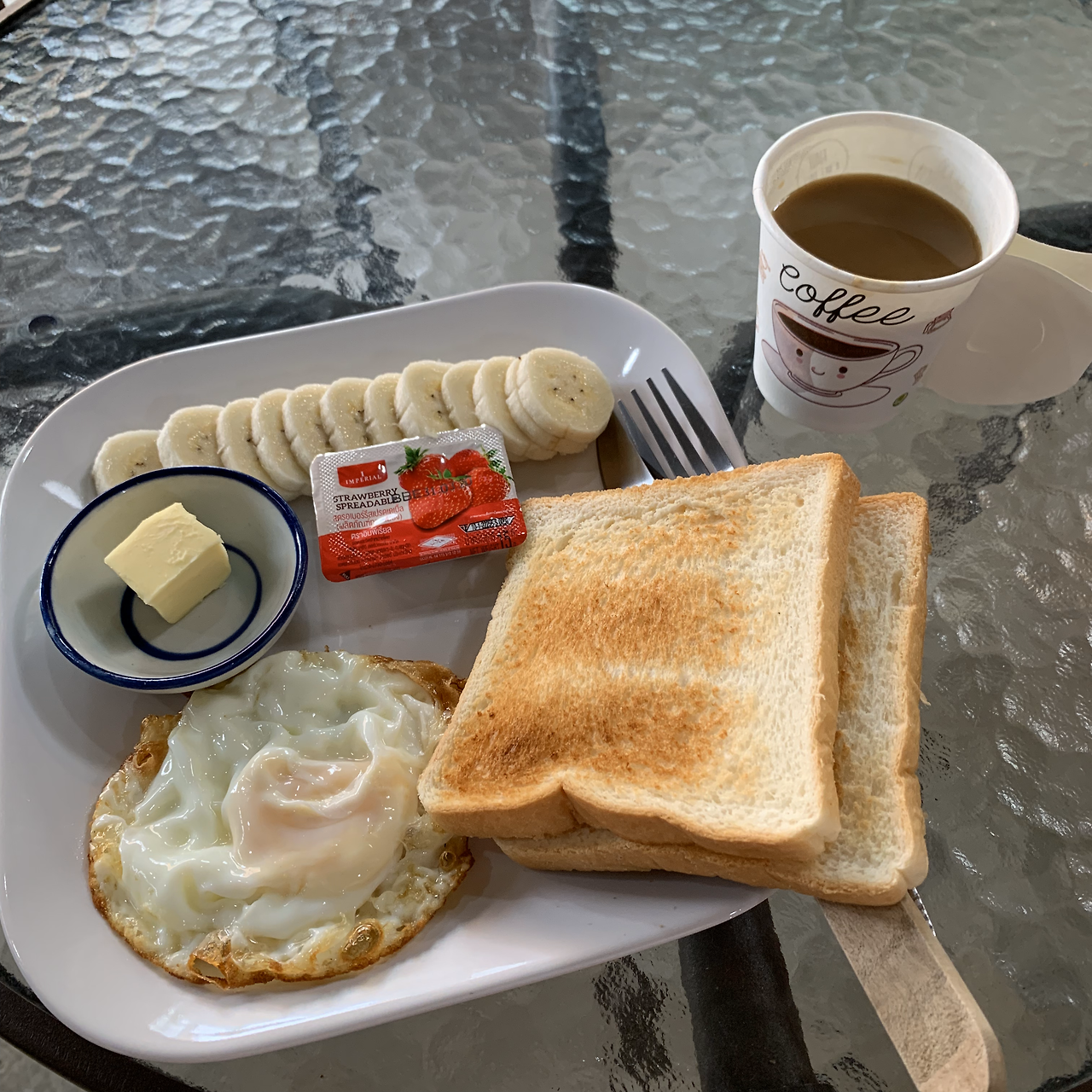시원히 내리는 비를 바라보며 맛나게 아침식사 끝
