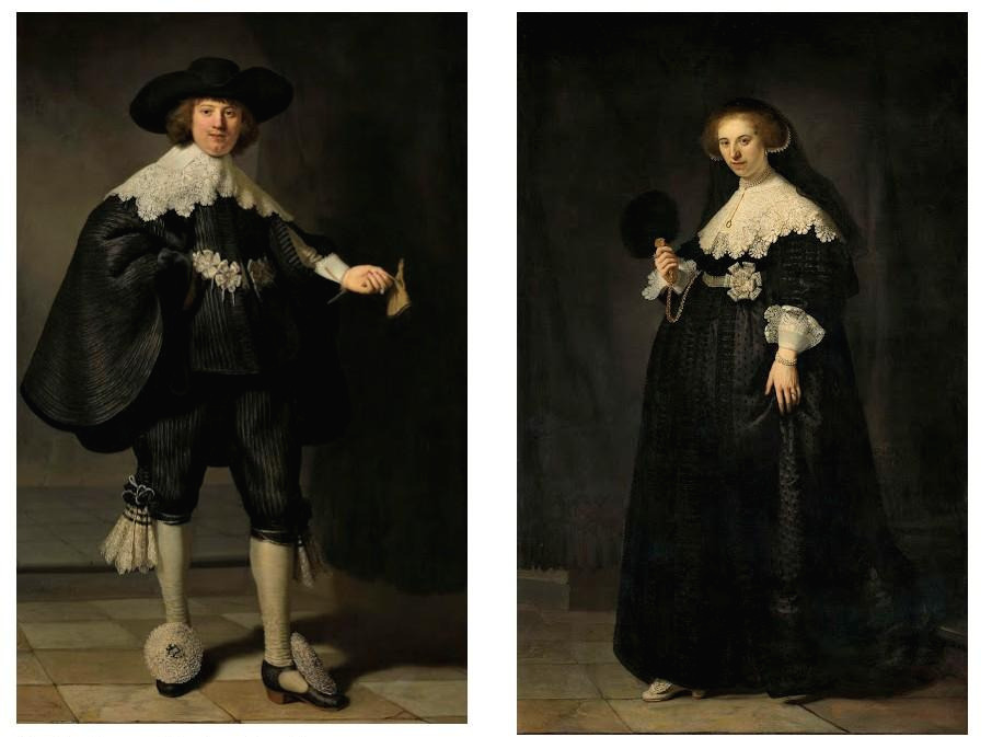 렘브란트는 역사화가가 되는 것이 그의 야심이었으나 개신국 공화국 네덜란드에서는 종교나 역사, 신화 주제의 대작을 주문할 교회나 궁정이 없었습니다. 미술품의 주요 수요자는 네덜란드의 시민, 즉 상인을 중심으로한 중산계급이었는데 활동 초기 렘브란트는 이러한 고객의 초상화가로 명성을 얻었습니다. 이 작품에서 보이듯 인물의 사실적인 묘사, 음영의 뚜렷한 대조, 엄청나게 큰 솔만스의 구두 장식을 비롯해 다양한 옷감으로 이루어진 의상의 완벽한 재현은 당시에 렘브란트를 가장 주목 받는 초상화가로 만든 요인이 되었습니다.