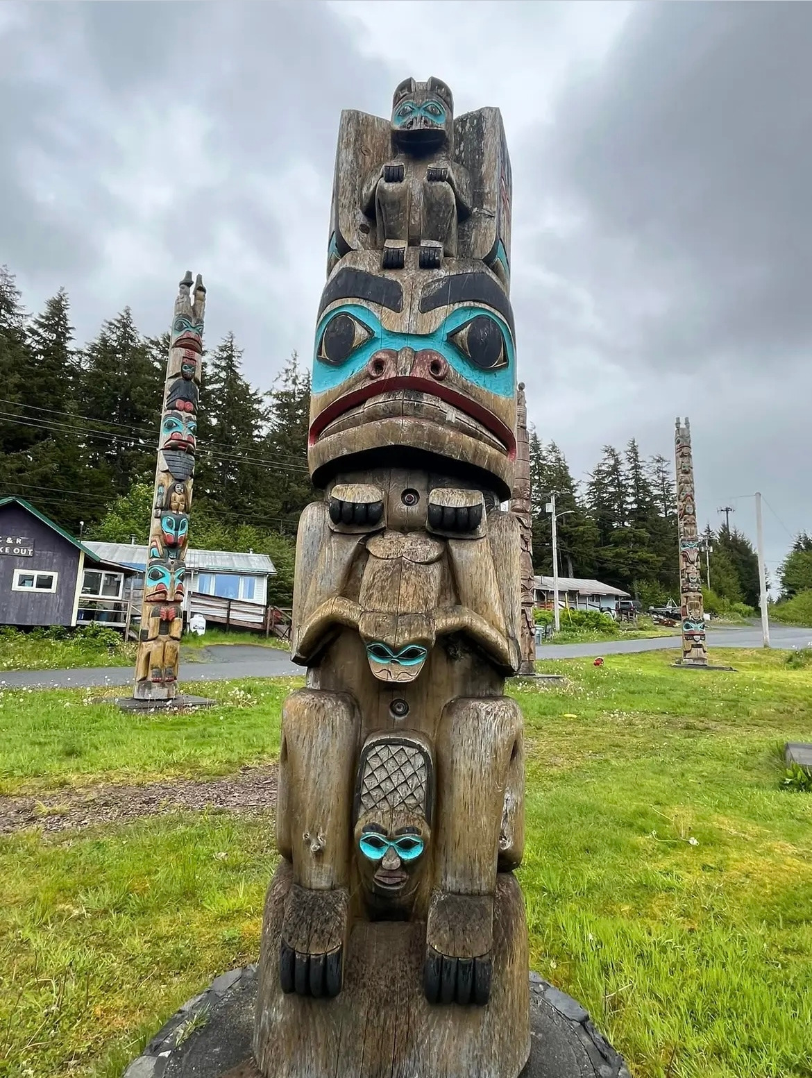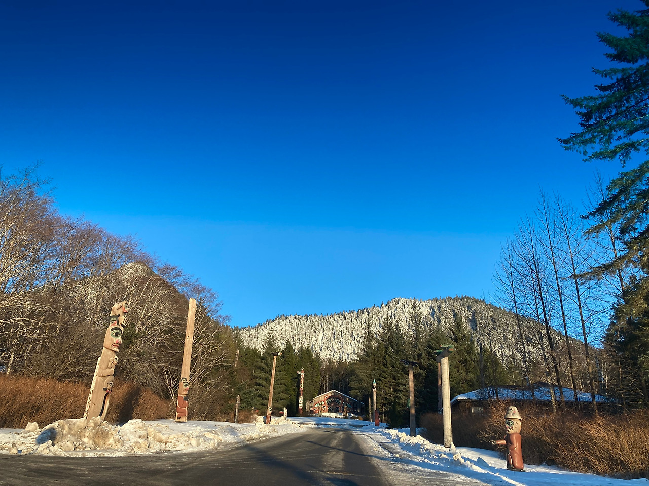 할아버지 집은 삭스만 빌리지(Saxman Village)라는 작은 원주민 마을에 있다. 우리 집에서 차로 5분 거리이다. 삭스만으로 들어가는 길목에는 양옆으로 토템폴이 줄지어 서있다.