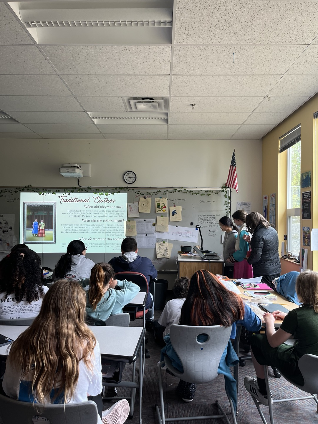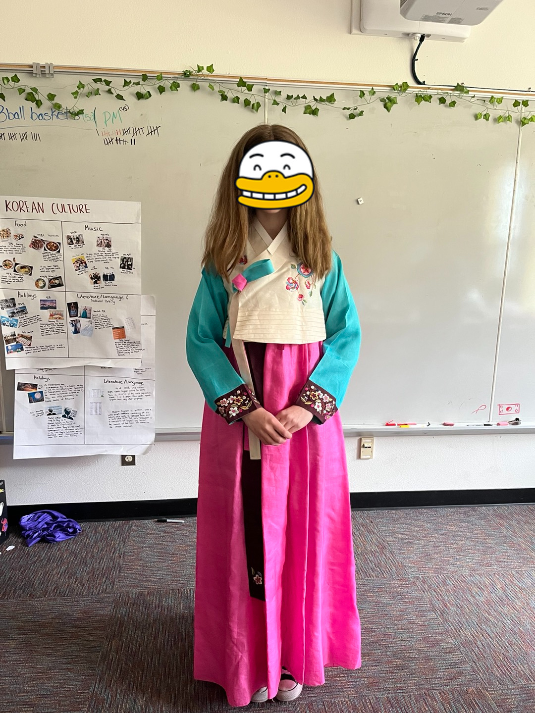 나는 한글로 이름 쓰기 코너를 맡았기에 한복과 잡채, 기타 필요 물품들을 잔뜩 들고 교실로 향했다.