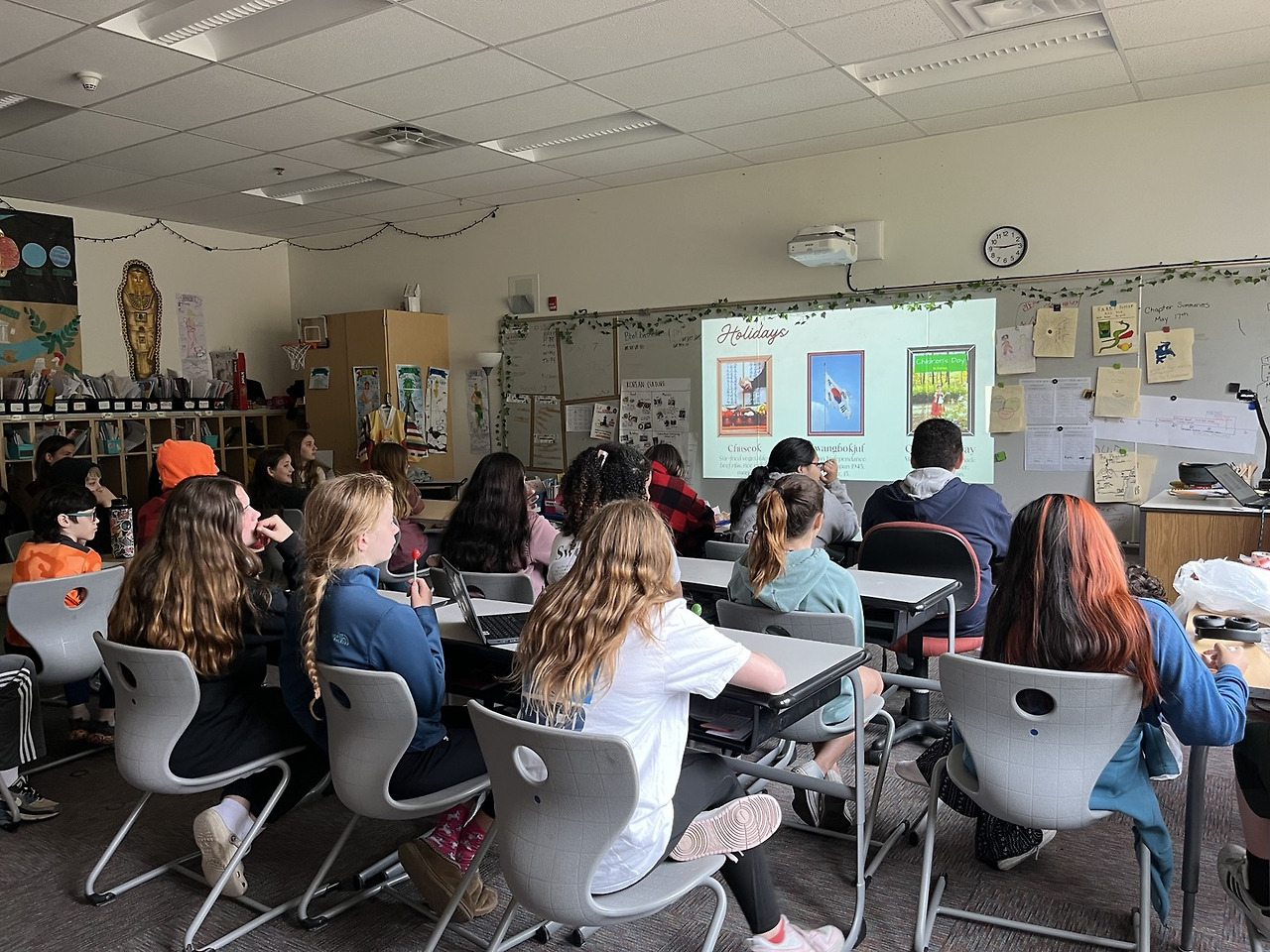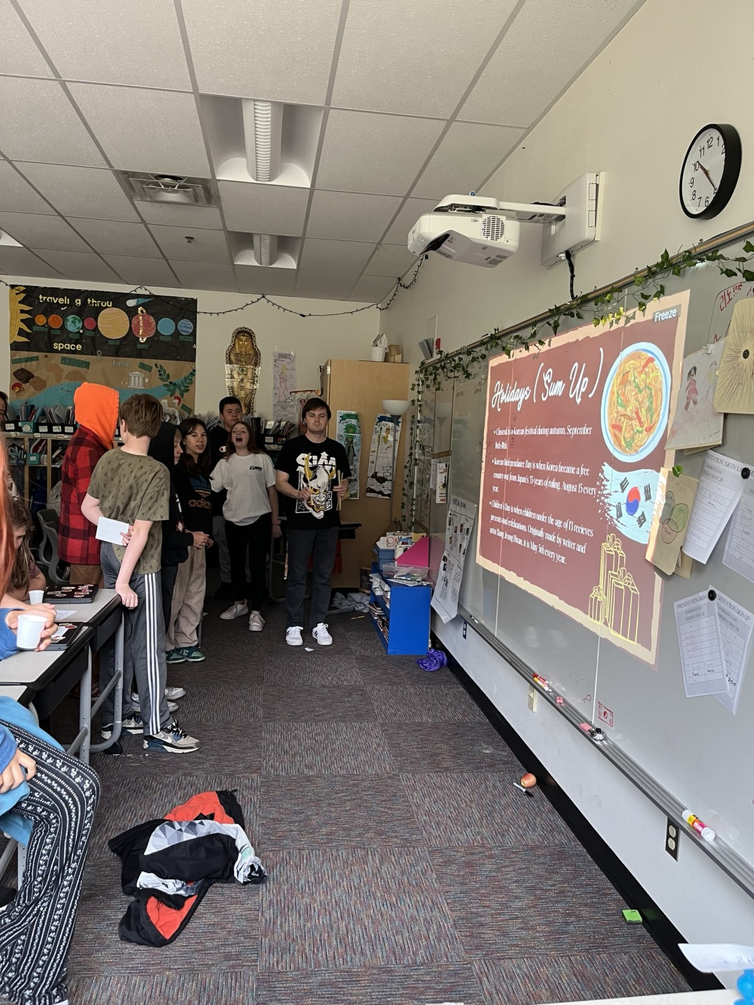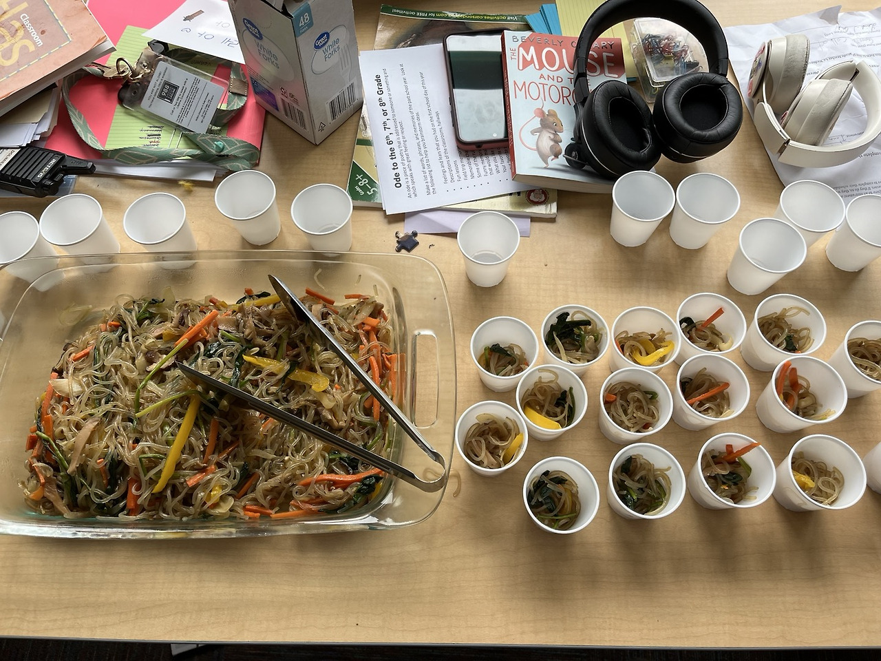 슬이의 친구 K-pop의 열혈팬 홀리와 일본을 좋아하는 케일리 그리고 슬이가 준비했다. 세 명이서 몇 주 전부터 계획하고 의논하기 시작했다. 그래도 우리 중에 내가 가장 한국에 오래 살았고 한국 문화를 잘 알지 않는가^^ 어떤 것을 소개할지 약간의 팁을 주면서 어떤 음식을 만들어가면 좋을지 이야기를 나눴다. 의외로 여기는 알러지가 있는 아이들이 많다. 그리고 매일 싸가는 도시락을 통해서 이미 한국 음식을 맛본 지라 새로운 메뉴가 필요했다. 고민 끝에 잡채로 결정하고 아침부터 부지런히 만들었다.