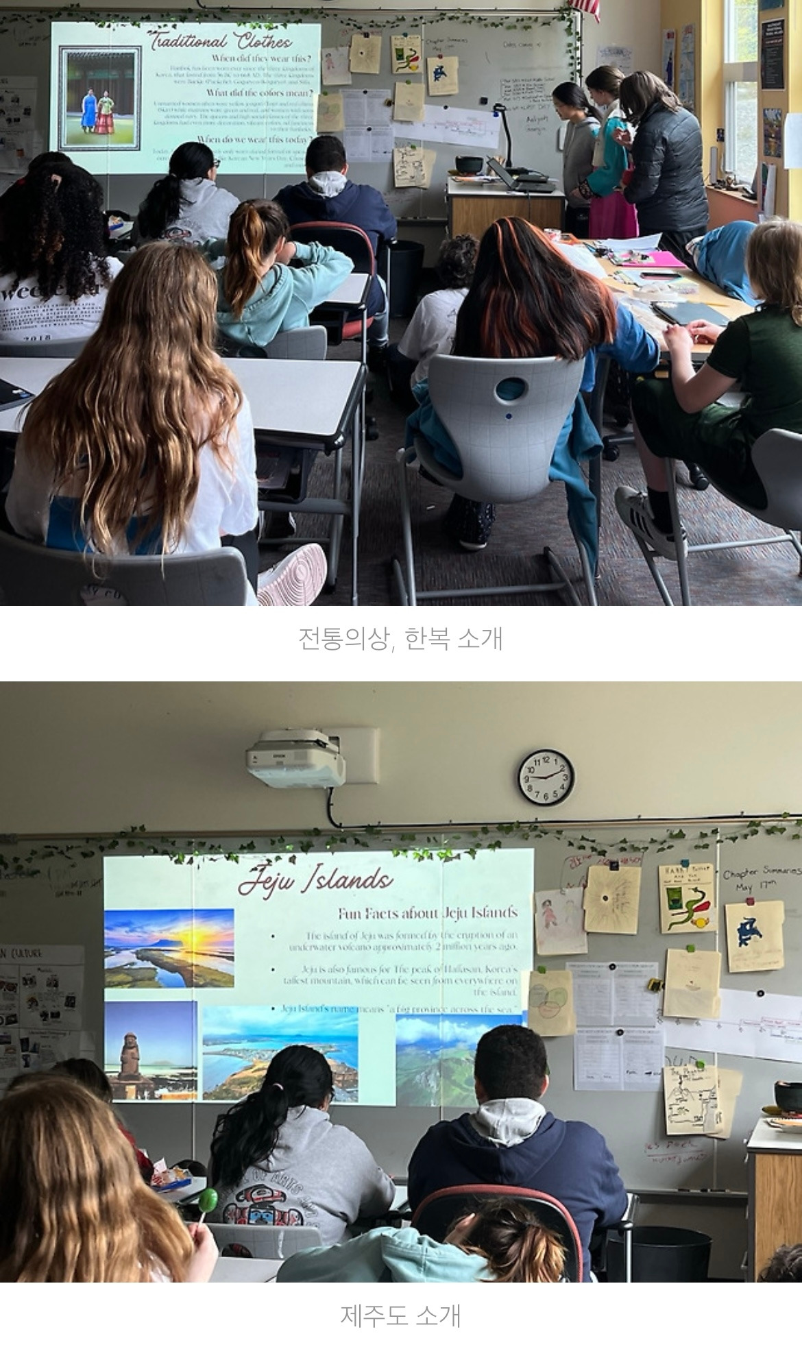 잡채는 대성공이었다. 아이들이 한 입 먹고 "맛있다!"며 더 달라고 손을 들었지만, 다음 순서를 위해 한번만 먹는 것으로 했다. 아쉬운 건 내가 한글 이름 코너를 담당하느라 케이팝을 가르치는 홀리와 한복을 소개하는 케일리의 모습을 사진에 담지 못한 점이다.